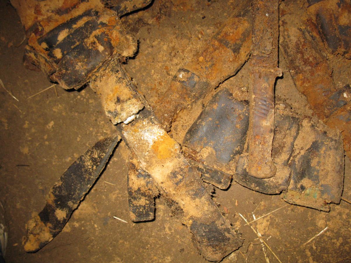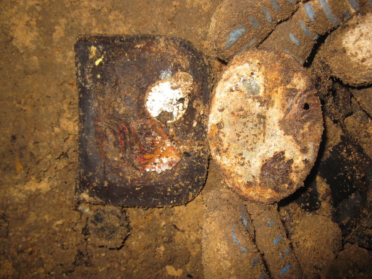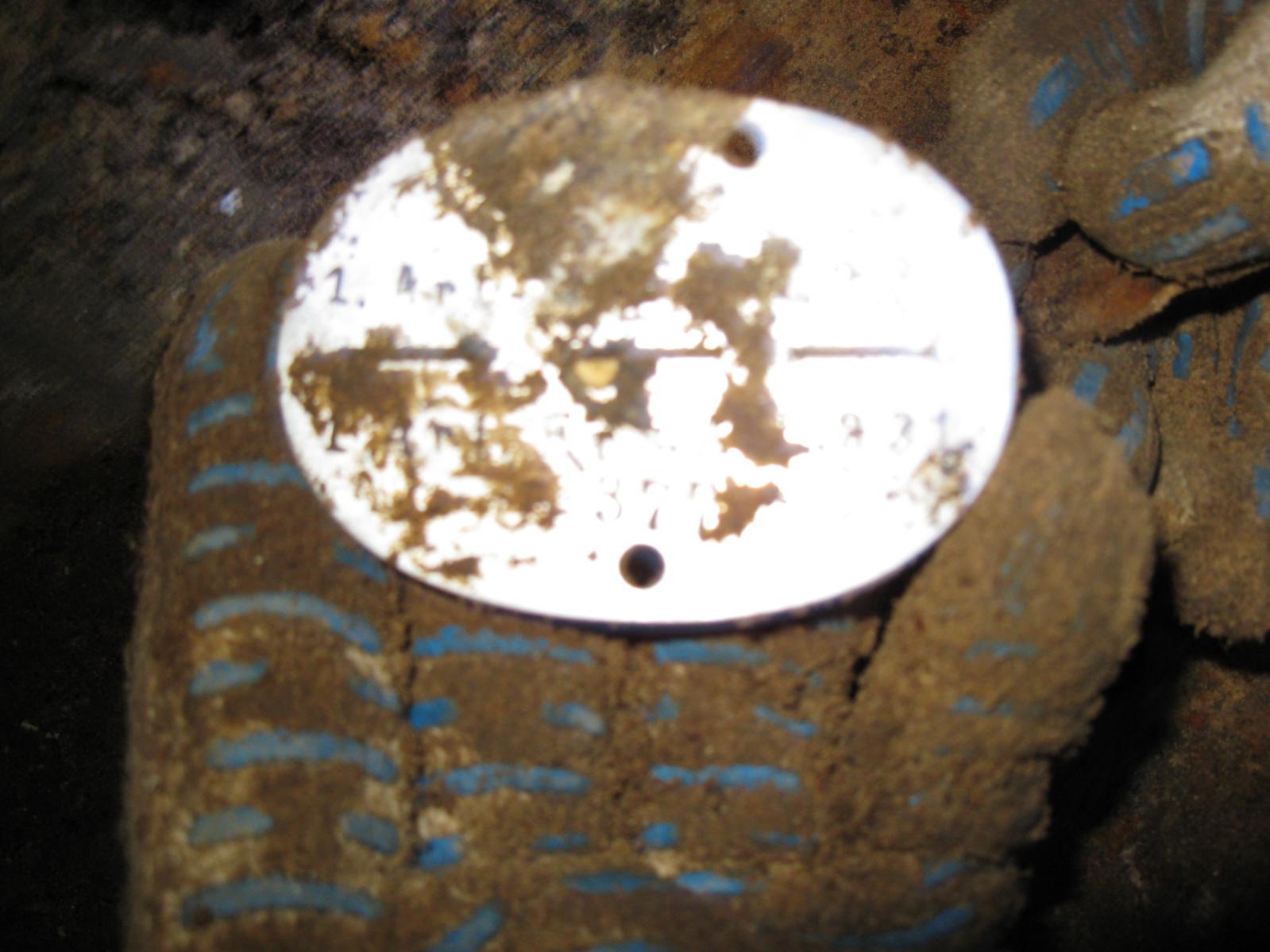 Былi усялякiя дробязi ,але у вельмi кепскiм стане. Штыкоу зараз ужо няма ,засталiся толькi гэтыя рэчы. Алюмiнявыя жэтоны цiкавы тым што па iх добра вiдаць вайсковы шлях гэтых двух хлопцау .Разам вучылiся ,разам ваявалi ,разам загiнулi, разам i у зямельку леглi. Усiх жаунерау дзякуючы WASt атрымалася распазнаць. У мiнулым годзе iх перазахавалi.