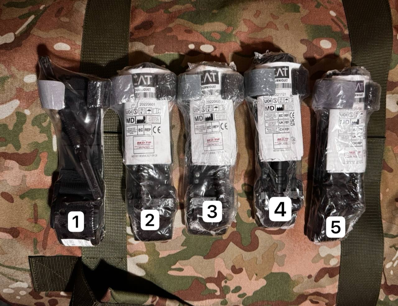 Турникеты: - 2шт САТ ostrich Япония новые, без дефектов 900грн/шт Обозначение на фото: 1) SAM присутствует надрыв упаковки 700грн 2) САТ имеет потертости упаковки 700грн 3) САТ имеет потертости упаковки и небольше отверстие в верху 700грн 4) САТ имеет продольный надрыв упаковки на всю длину 600грн 5) САТ имеет потертости упаковки 700грн