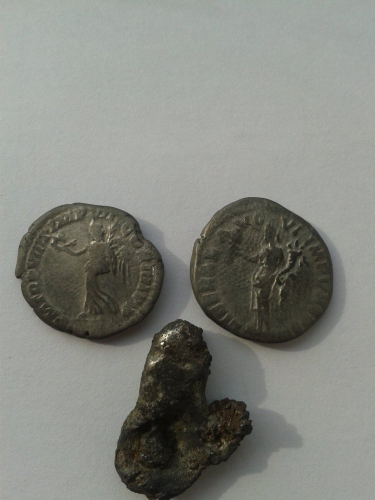 Також попадаються кусочки динарів і плавлені динари......