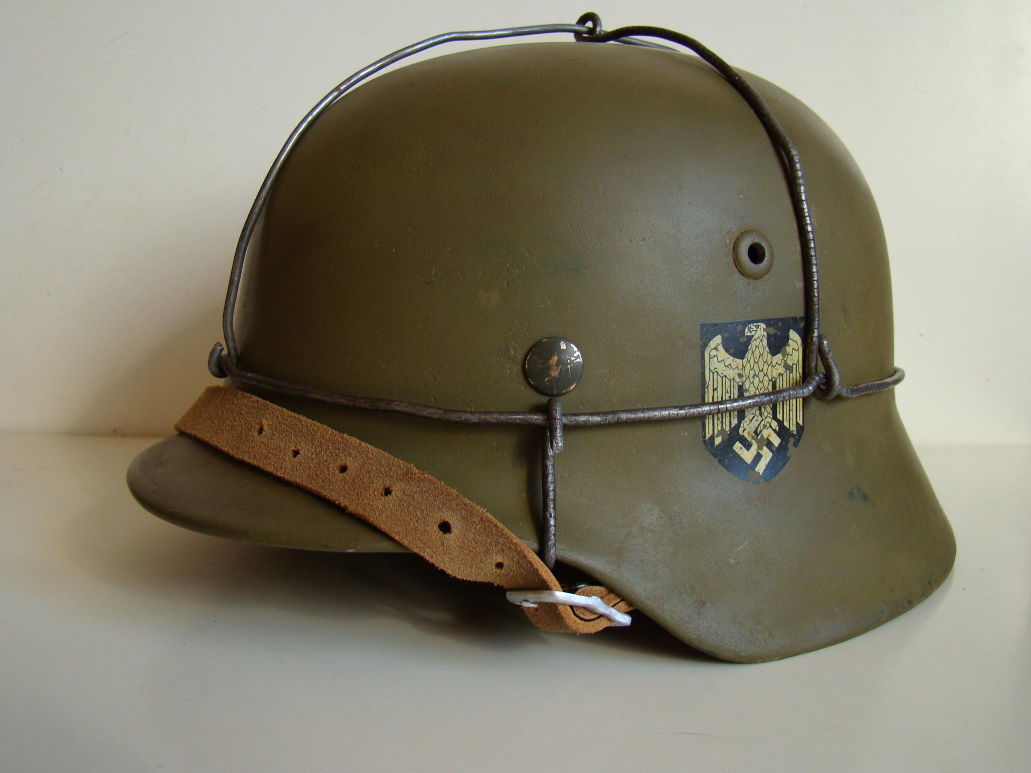 Всё. Закончил. С подшлемом долго возиться не пришлось, взял оригинальный обруч и вставил внутрянку. Жаль, что размер маленький получился, на голову молотком одевать надо:). Обвязал проволокой, что-бы хоть немного добавить вес. Идею подсмотрел у камрада Vanderbild в одной из его продаж. Проволока, правда, слишком блестит, но дошло это до меня слишком поздно. Вообщем, оставил, как получилось и на полку.