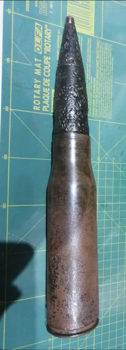 Корпус снаряда проточен , типа он служил украшением столбика оградки .. По маркировке взрывателя я лишь определил , что он 44го года выпуска .. Надо выкручивать детонатор (левая резьба) , тогда и будет понятно учебный он или нет ..))))