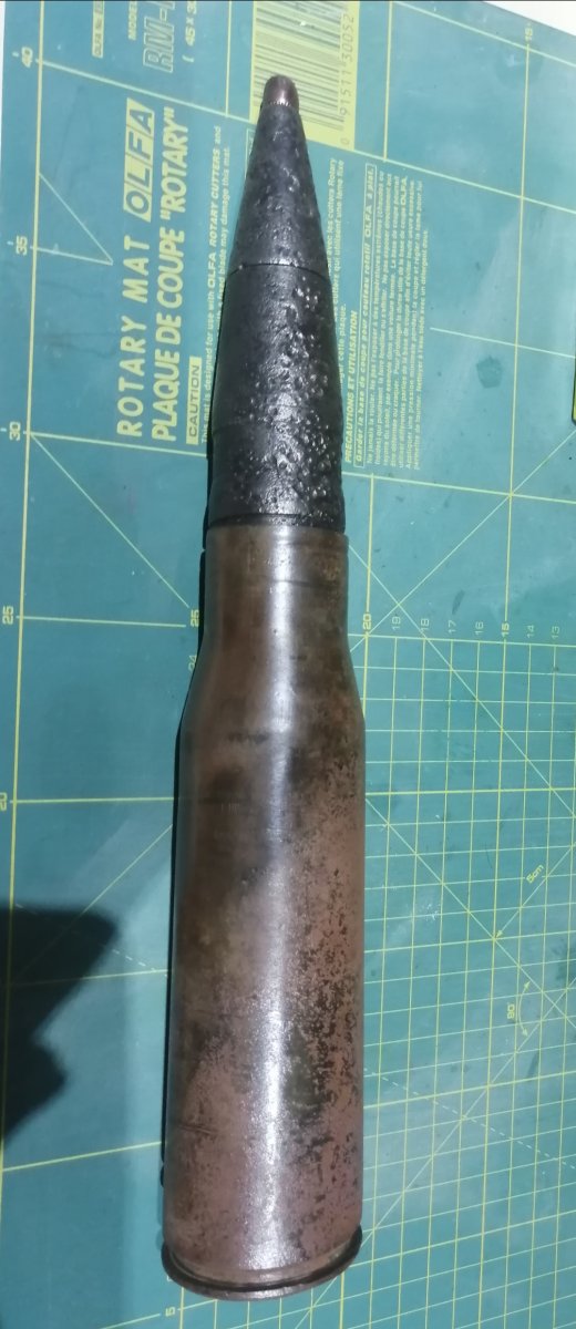 Как тренировочный , он должен был быть неразъемным с гильзой .. Однако он проточен на станке , срезан ведущий поясок и в штатной гильзе он будет болтаться , разве что и гильза тогда должна быть сделана специально для него .. Причем снаряд и гильза должны быть стянуты шпилькой , что бы патрон не разваливался в процессе тренировок ..