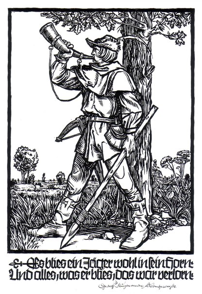 Георг Слюйтерман фон Лангевейде (Georg Sluyterman von Langeweyde) немецкий художник-график и бард, его еще называют «Дюрер Третьего Рейха»... Георг Слюйтерман фон Лангевейде — родился 13 апреля 1903 в большом городе рурской промышленной зоны Эссене. Он был девятым сыном в семье артиллерийского офицера и инженера-строителя Бернхарда Слюйтермана Лангевейде. Его мать происходила из ткацкого рода Нолл из Нижней Саксонии, отец же имел голландское корни. 1 мая 1928 вступает в НСДАП и становится членом СА. Там он создает плакаты, виньеты и карикатуры. Он придумывает заголовки для «Нового фронта» («Neuen Front» — еженедельной газеты НСДАП в гау Дюссельдорф), регулярно работая для этого издания. Его целью было изобразить крепкое, сильное и естественное в конфронтации со смертью. Георг рисует несколько циклов гравюр на дереве, в том числе «Песню немецкого народа» (1935 г.), «Немецкую песню» (1938 г.), что делает его знаменитым в прессе и по всей Германии. В 1940 г. входит в число трех немецких мастеров, представлявших самобытную современную немецкую графику на 22-м Венецианском Биеналле. В 1941 году художник записывается добровольцем в Вермахт и уезжает на Восточный фронт. В заснеженных областях набрасывает эскизы зимних пейзажей. В конце войны многие из его произведений сгорели, а сам художник попал в британский плен и был интернирован в течение года. После войны Георг пытался продолжить свою карьеру. В период «денацификации» некоторые из его работ были уничтожены, а он пытался продолжить свою карьеру в очень трудных условиях. Чтобы как-то прокормиться, делал преимущественно рекламные картинки. В 1946 году вторично женился. Европейский книжный клуб назвал его одним из пяти лучших немецких иллюстраторов и присвоил его рисункам статус антикварных. Также он писал стихи, баллады, любовные, дорожные и застольные песни в стиле Германа Лонса (немецкий журналист и романтик, автор патриотического романа «Вервольф» о Тридцатилетней войны, погиб во время первой мировой войны во Фландрии) которые он сопровождал игрой под гитару. В 1970 году Лангевейде опубликовал свои песни в объединенном сборник, выпущенном на пластинке. Его гравюры были вновь опубликованы и распространены в основном с 1970 гг издательским домом Уве Берг. В 1970 году Георг получил почётное золотое кольцо от националистического общества «Немецкого культурного достояния европейского духа» (Deutschen Kulturwerks Europäischen Geistes — DKEG). Впоследствии он также получил должность в академии образования и культуры в Мюнхене. В 1973-м становится почётным гражданином своего родного города Бендесторфа. Георг фон Лангевейде умер 5 января 1978 года в своём доме в Бендесторфе. Его фото и автопортрет: И его работы:
