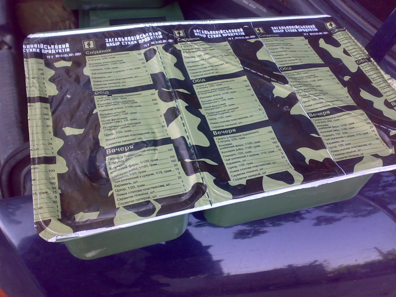 Добрый день! Предлагаю Украинский сух. паёк. Цена - 90 грн. + Ваш пересыл. Доставка: Ночной Экспресс, Автолюкс, Деливери (вроде бы дешевле чем все) и еже с ними.