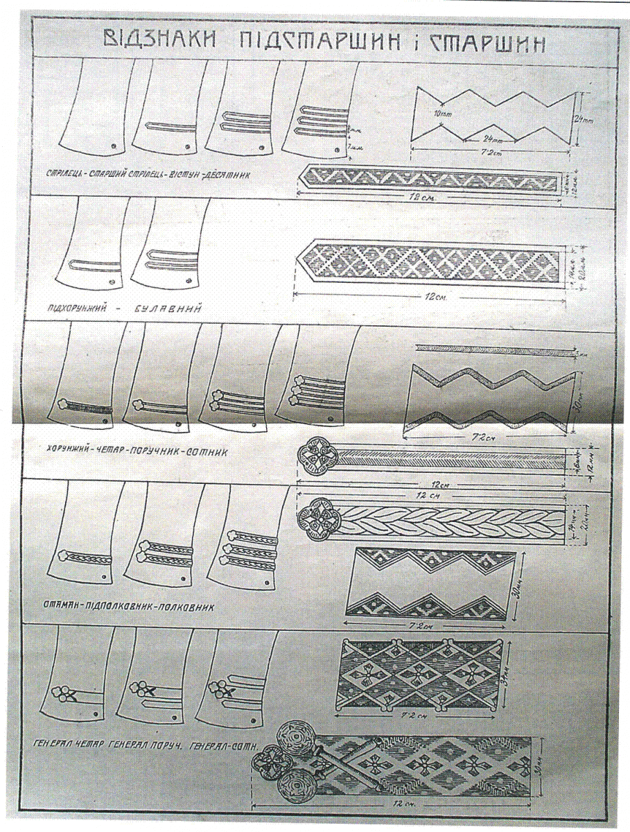 Вiдзнаки сотника, поручника, четаря, хорунжого встанoвлені XLVI рoзпoрядoм Державнoгo секретаріату військoвиx справ (ДСВС) від 22 квітня 1919 р.