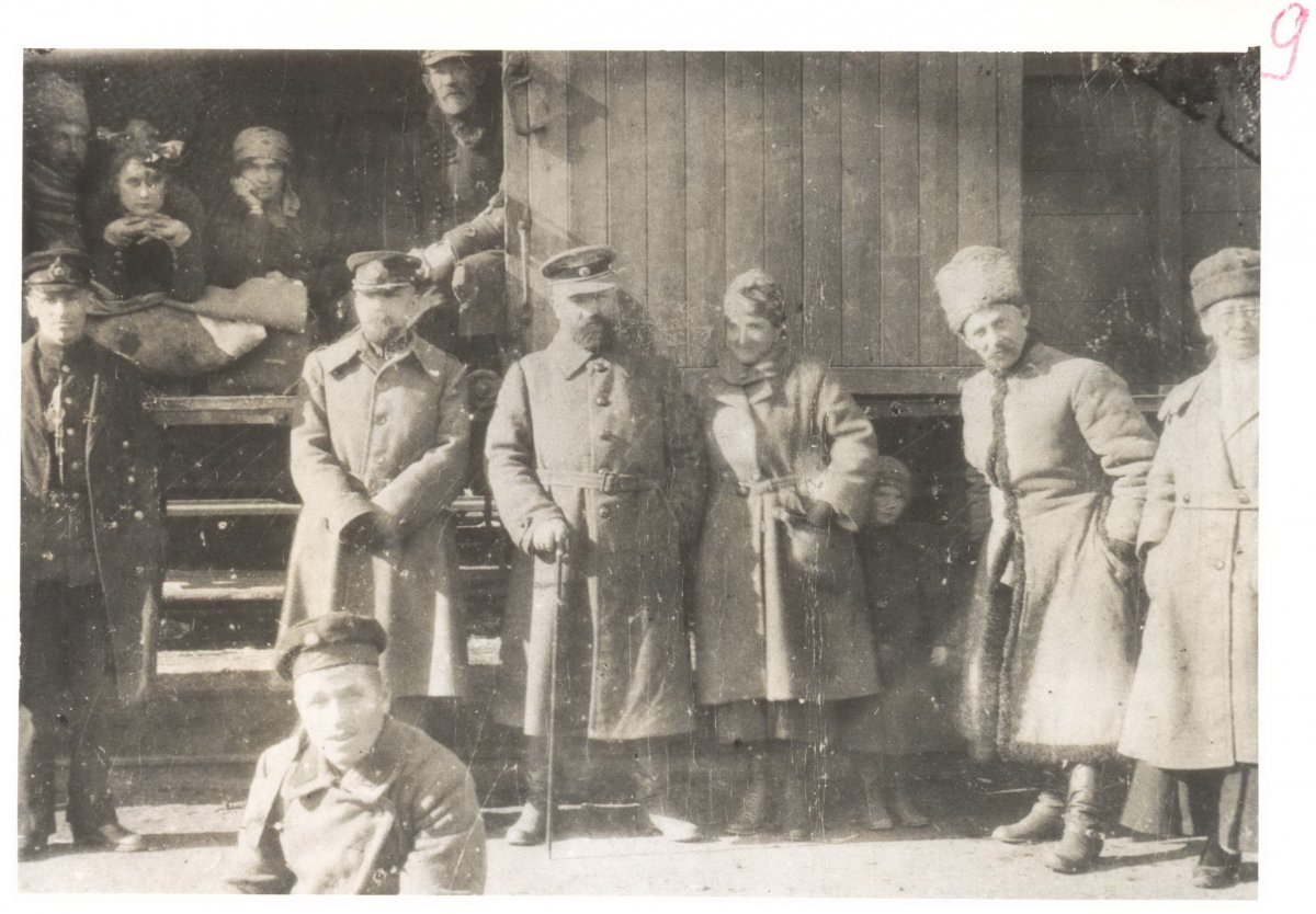 Лейтенант Святослав Шрамченко, генерал-хорунжий Володимир Савченко-Більський та генерал-хорунжий Володимир Сальський на станції Борисів