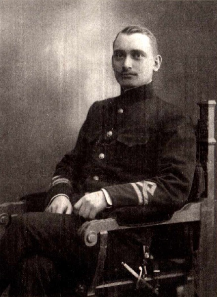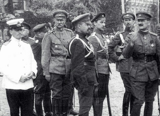 Микола Лаврентійович Максимов в білій морській формі серед службовців воєнного міністерства Української Держави.