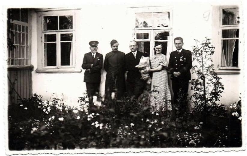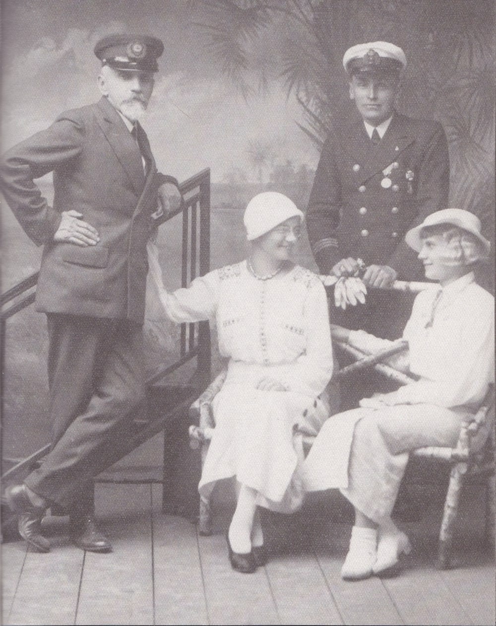 Генерал-хорунжий Військово-Морського флоту УНР, контр-адмірал Володимир Савченко-Більський, капітан-лейтенант Святослав Шрамченко, та дружина інженер Гурандо з її племінницею. Сарни. 1930 рр.