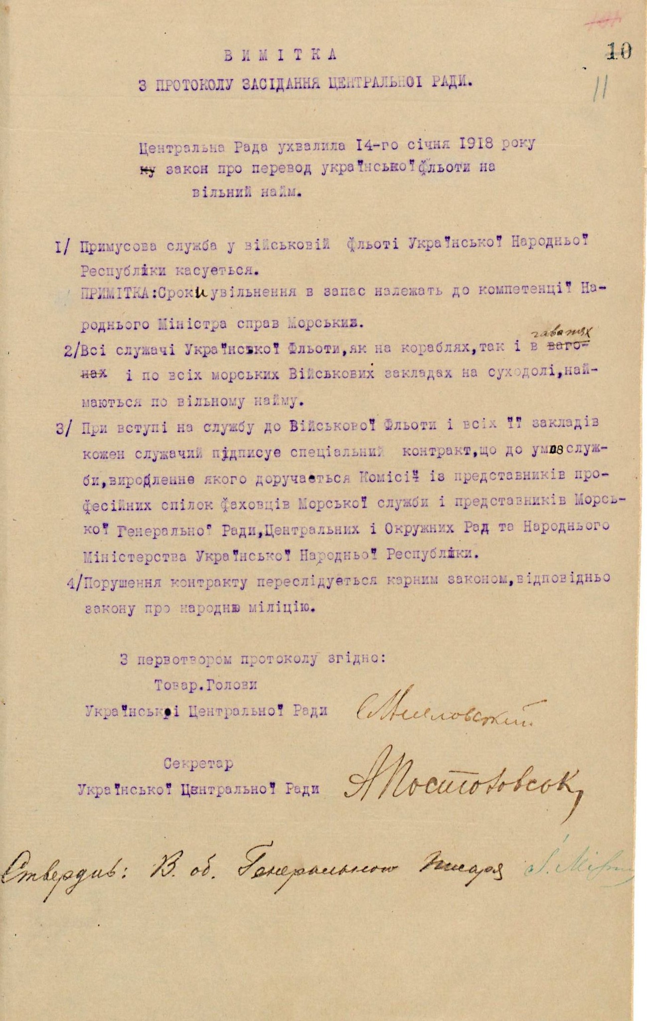 Наказ по морському відомству Української Держави про призначення віце-адмірала А.Г. Покровського Головним командиром портів і командуючим флотом Української Держави. 23 травня 1918 року.