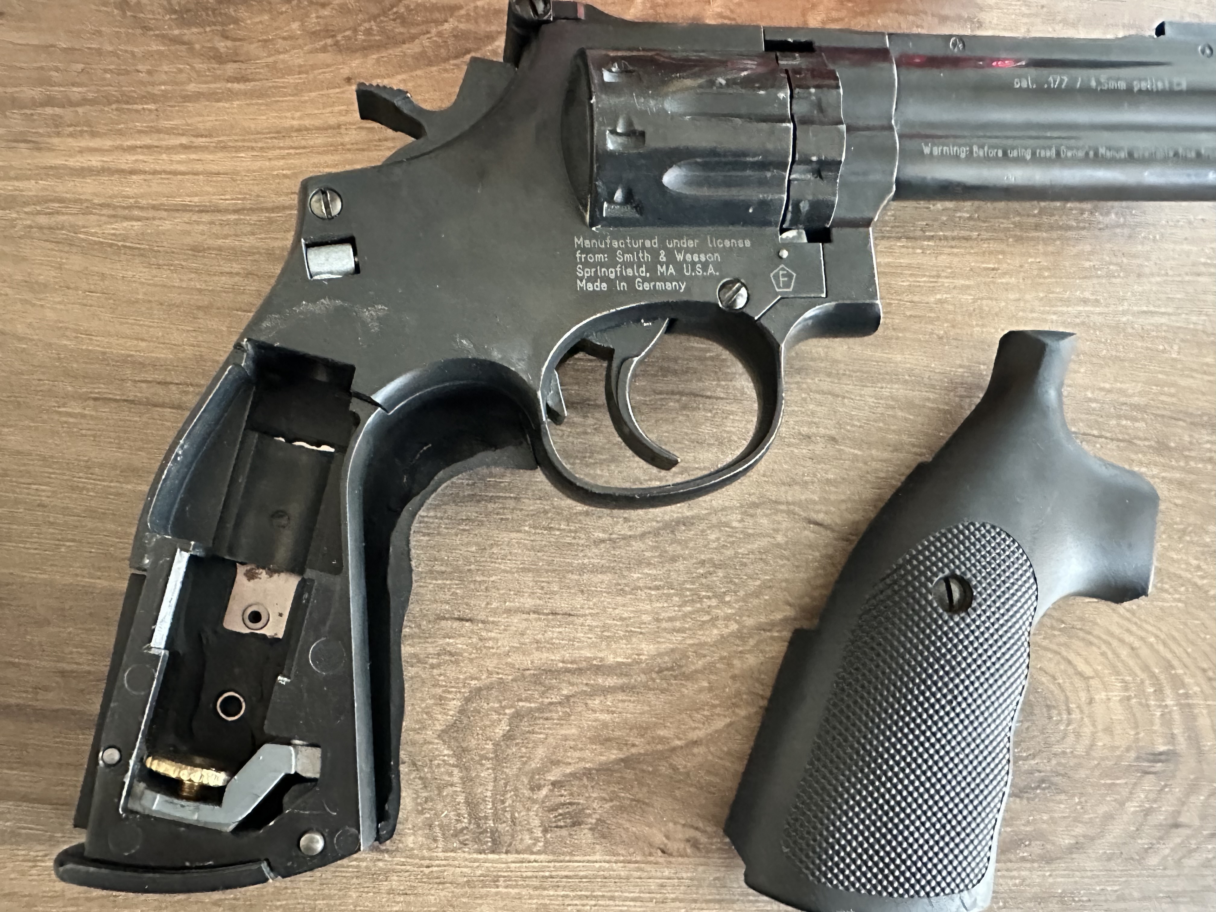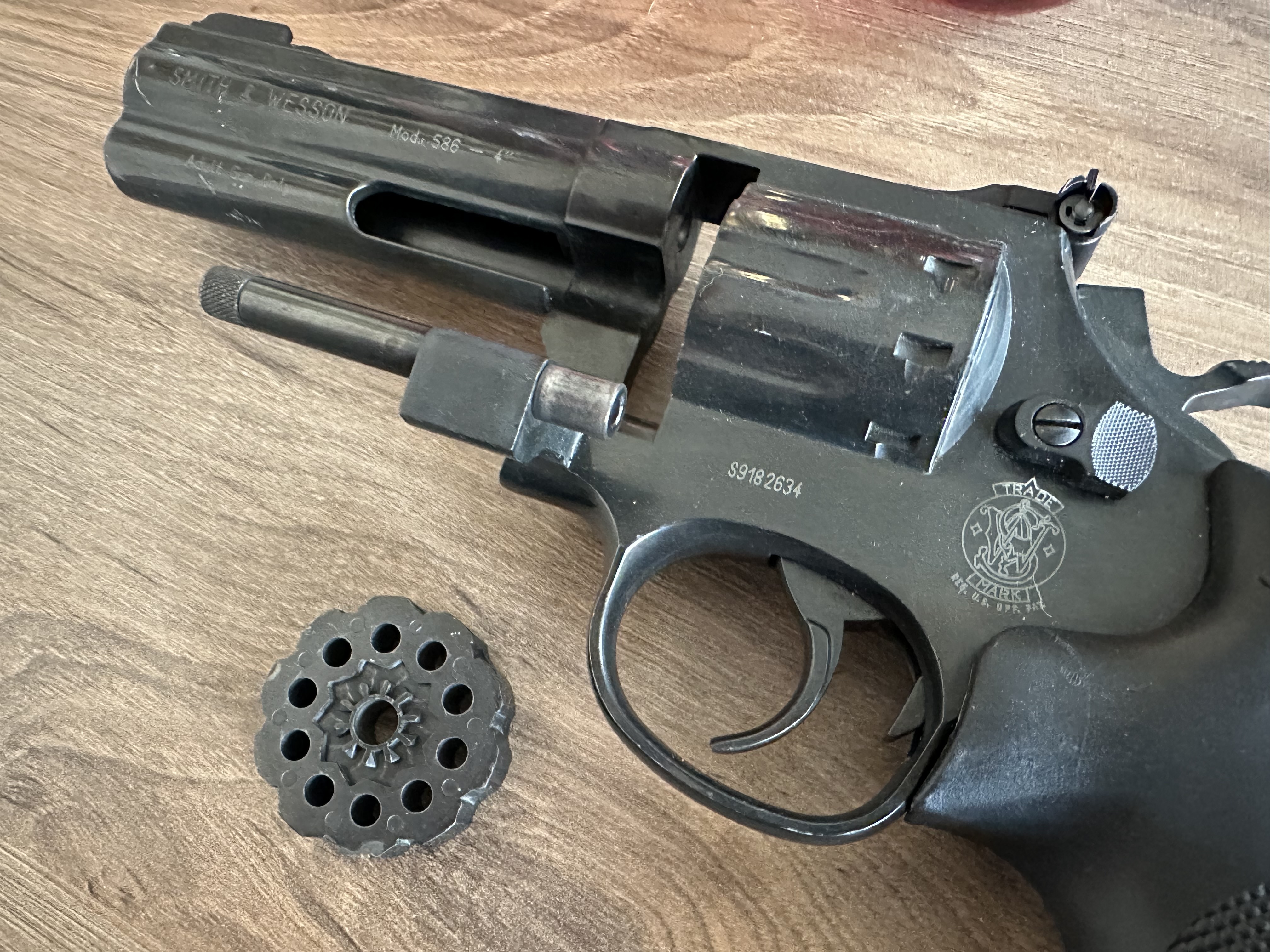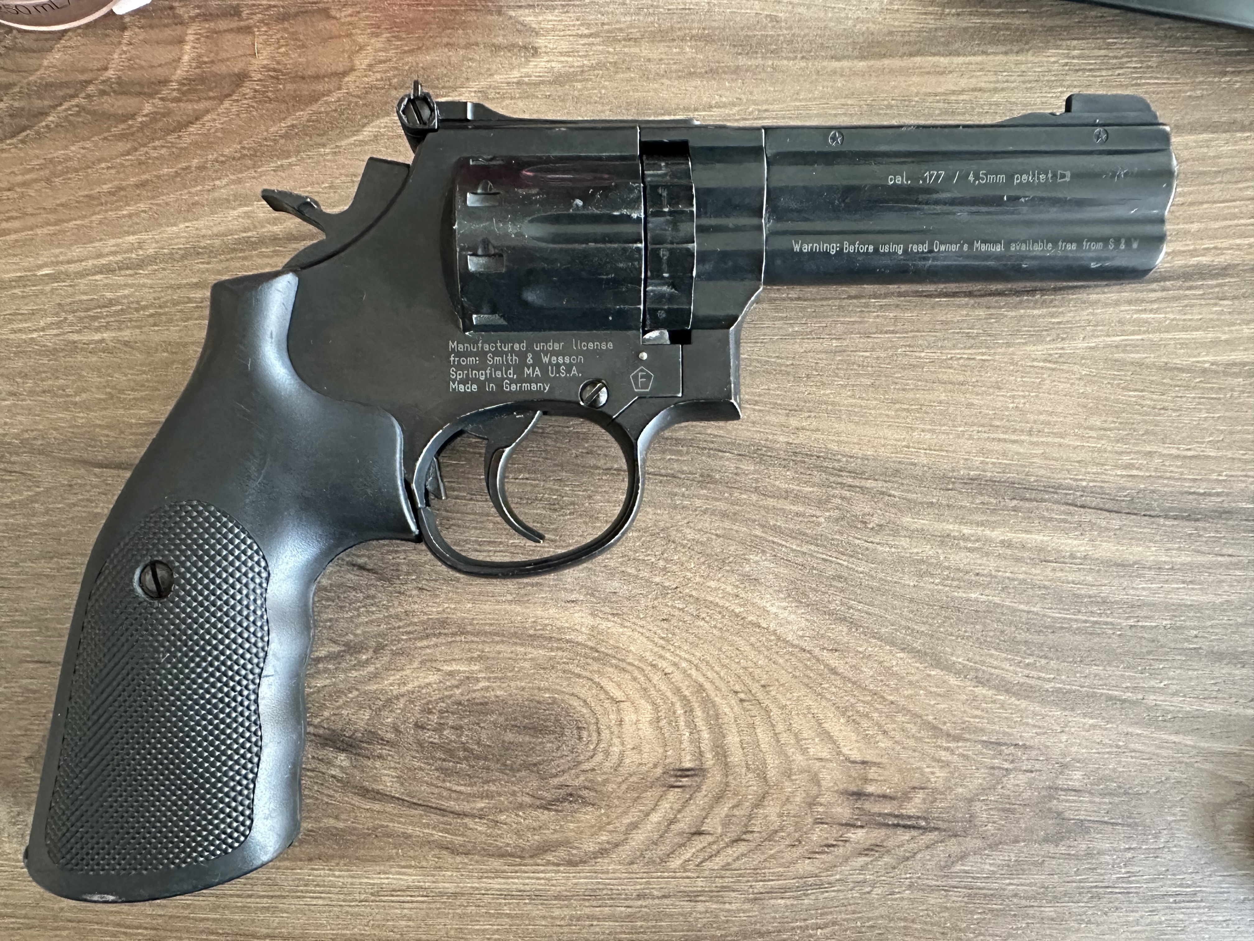 Продам німецький со2 револьвер, повністю металевий, ліцензійна копія американського Сміта. Стріляє тільки свинцевими кулями, ствол Лотар Вальтер. Барабан 10 куль. Дуже точний кулями які на фото (excite econ), один отвір в мішені. З балона 70-80 пострілів. Стріляє потужно і голосно, швидкість не міряв але все пробиває і розбиває. Може стріляти самовзводом (sa) і з попереднім взводом (da) Немає недоліків крім потертостей і подряпин, працює як годинник. Ціна 3500грн.