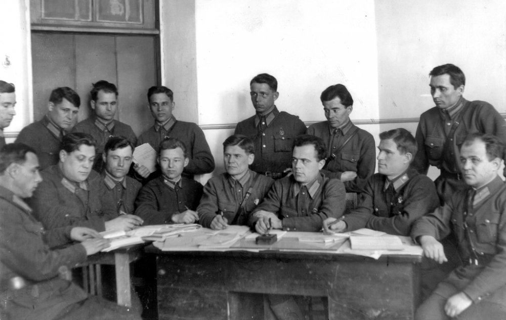 это уже новые знаки различия, введенные в 1939 году Петлица рисовалась уже в наше время и не совсем соответствует действительности - в реале герб был больше. Старшины не нашел, но двоих помладше поймал. фото внизу... по петлицам можно поспорить. как по поводу милиции так и по поводу 2-х других послевоенных контор (кроме "банкиров") - Мингосконтроля и Минзаготовок СССР. Там должностные лица носили такие же петлицы. По всей видимости их срисовали с довоенных образцов, поэтому немудрено перепутать... а вот кокарда, скорее всего, послевоенная... милицейская все же крупнее. так что родственник по теме не проходит... Возможно это вообще не форма...