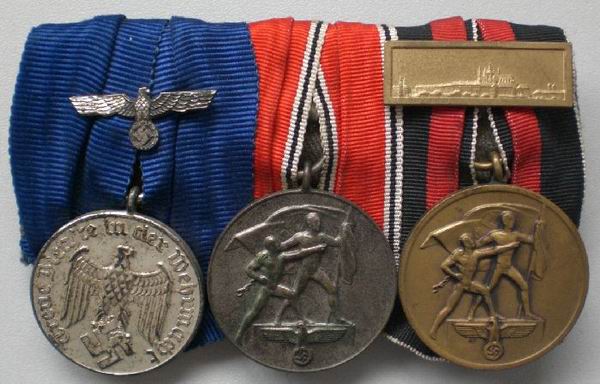 Медали за Чехословакию с пристежкой "Пражский бург". Практически весь состав Лейбштандарта задействованный в присоединении Чехословакии был награжден данными наградами.