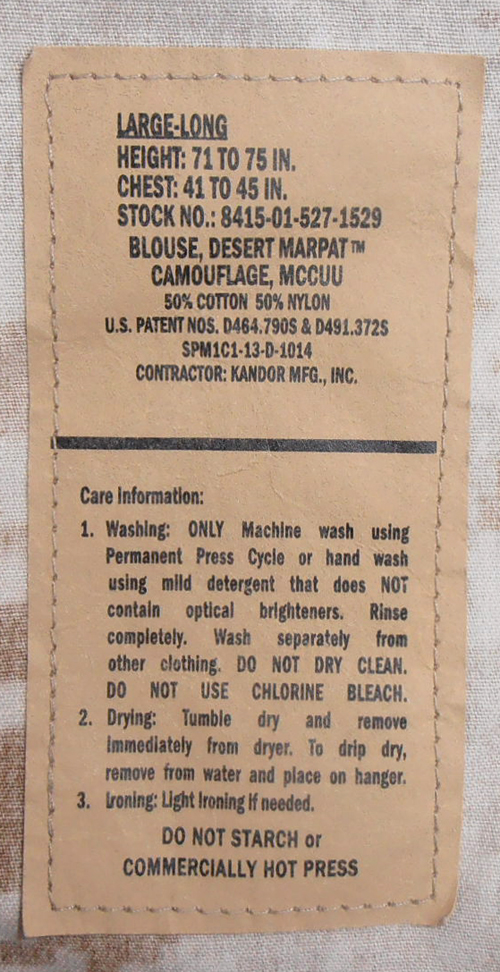 124. Китель MARPAT Desert (L-L) Расцветка: Desert MARPAT Производитель: Kandor MFG., Inc. Размер: Large Long Состояние: в состоянии нового продан