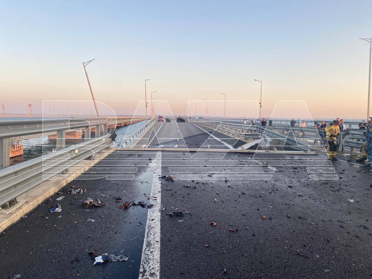 Щонайменше два великих порвала дорожного полотна на Кримському мості після «ЧП», - радник мера Маріуполя Петро Андрющенко публікує таке фото