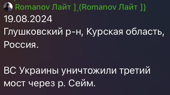 Про мост: росіяни відступили на Курщині (жест доброї волі 3.0), — росЗМІ російське угруповання військ у прикордонні над Тьоткіне відступило за річку Сейм та підірвали за собою мости Тепер на всій позначеній території відсутні сили росіян ❗️ росіяни відступили на Курщині (жест доброї волі 3.0), — росЗМІ