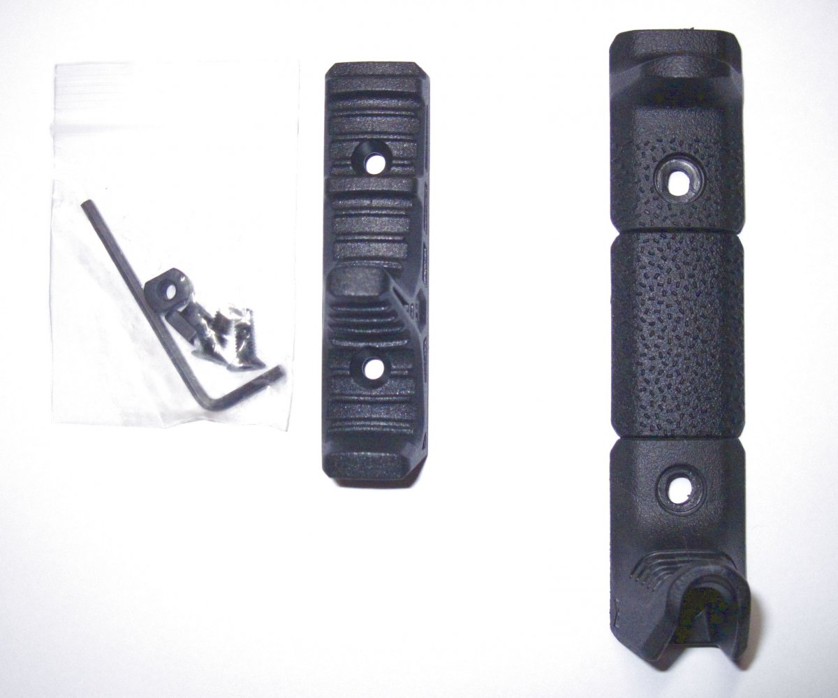 Предлагаю низкопрофильные упоры на цевьё (hand stop) с интерфейсом крепления под M-LOK и KeyMod. Подобные упоры предназначены для выработки единообразного хвата, предотвращения скольжения руки по цевью и улучшения в результате этого контроля оружия. Для карабинов с короткими стволами упоры также выполняют своеобразную защитную функцию, предостерегая стрелка от хвата оружия за срез ствола. В наличии упоры трёх видов /на текущий момент остался лишь первый вариант/: 1. Первый является качественной репликой Magpul M-LOK Hand Stop Kit. По внешнему виду, габаритам и тактильным ощущениям не отличается от прообраза от Magpul – на фотографиях приведено сравнение с оригинальным магупловским девайсом (Magpul справа). Сам полимер (пластик) хорошего качества, без посторонних запахов и т.п. Есть различия в крепёжных винтах и гайках – винты тоньше и короче стандартных интерфейсных винтов под M-LOK, гайки тоже несколько мельче. Также чуть меньше диаметр отверстий под винты в пластике. При этом комплектный крепёж позволяет надёжно закрепить упор на цевье. Производителем заявлена поддержка интерфейсов M-LOK и KeyMod. По поводу первого подтверждаю – всё нормально крепится, а на счёт KeyMod не уверен и проверить не на чем. Производитель Китай. Цена 400 грн. 2. Второй упор заметно мельче первого – на фотографиях также приведено сравнение с оригинальным Magpul M-LOK Hand Stop Kit. Несмотря на малые размеры, хват цевья с упором очень комфортный (мне понравился больше, чем с первым, но это конечно сугубо ИМХО). Упор выполнен из прочного полимера. Производителем заявлена поддержка интерфейсов M-LOK и KeyMod, однако комплектные гайки явно носят эмлоковскую направленность. Производитель Китай. Цена - продано 3. Третий упор самый миниатюрный - на фотографиях закреплён на цевье в произвольном месте сугубо для понимания размеров и внешнего вида. Производитель, материал изготовления и стилистическое оформление такие же, как у второго. Цена - продано Отправка по Украине Новой почтой за счёт покупателя. Возможна продажа из рук в руки в Днепре. https://reibert.info/threads/aktivnye-strelkovye-naushniki-walkers-i-actfire.1264980/