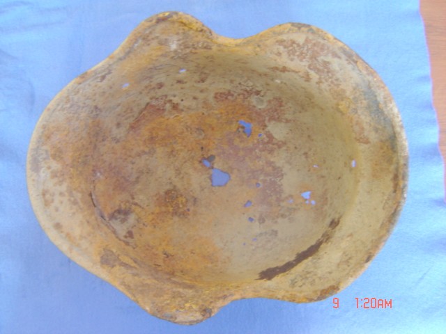 Шлем конечно мега редкий И цена от 800 оэро это реально и чем дальше тем дороже. Но если Вы на него положите хоть каплю шпатлевки и пару капель краски То потом и за 200$ продать будет проблемно. Он должен остаться в таком состоянии как есть. После реставрации он потеряет свою коллекционную ценность. И станет просто горшком похожим на очень редкий шлем Просто почистить если нужно покислотить и будет вам счастье! А испортить всегда успеете