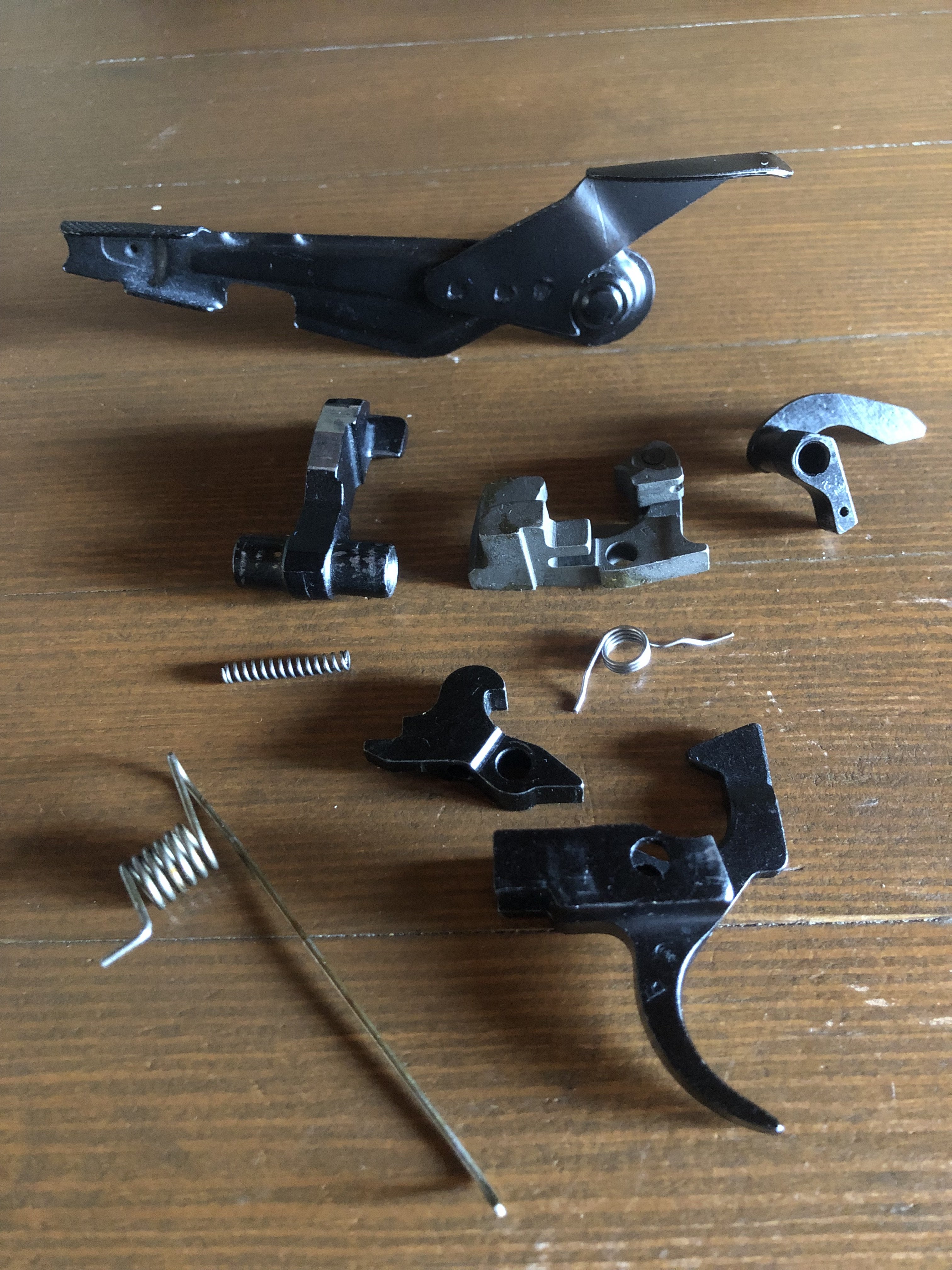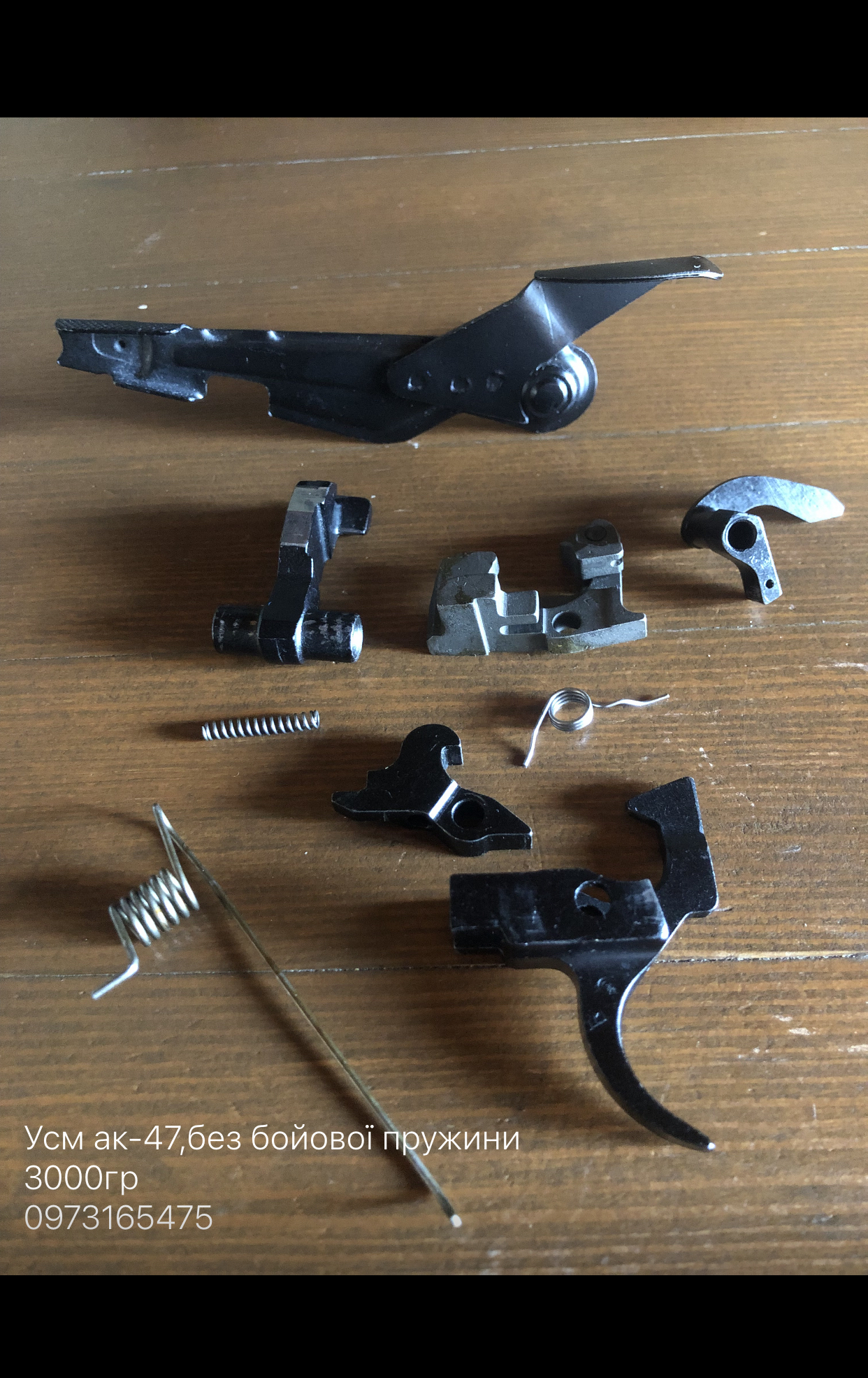 Насколько мне известно, - УСМ на АК-47 не имеет замедлителя и шептало на спусковом крючке двойное. Представленный комплект деталей УСМ - для более поздних АК-образных моделей. Удачи!