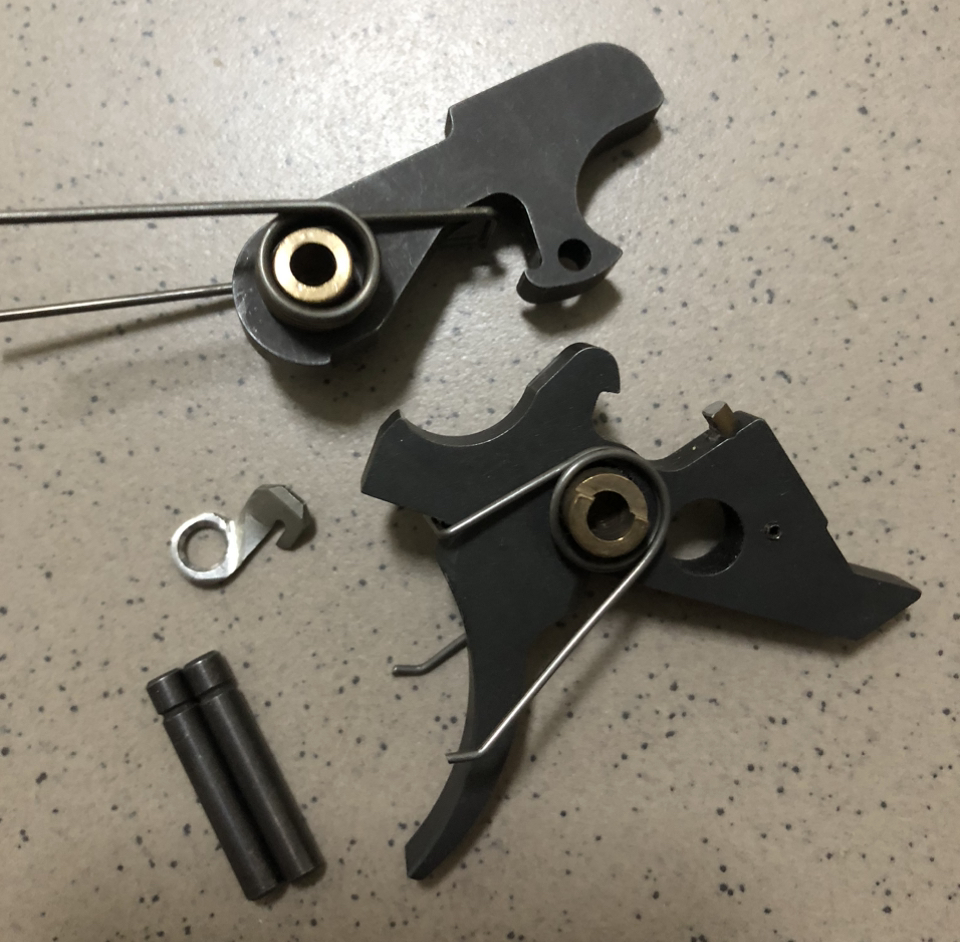 Двостейджневий УСМ від українського виробника зброї ,,Зброяр". Виготовлений із суцільної заготовки легованої та термообробленої сталі шляхом фрезерування з подальшим поліруванням робочих поверхонь до зеркала. Зусилля спуску близько 4 фунтів: близько 3 мм рух вільного ходу і далі класичний перелом ,,склянної палички". Стан - новий Ціна 130$