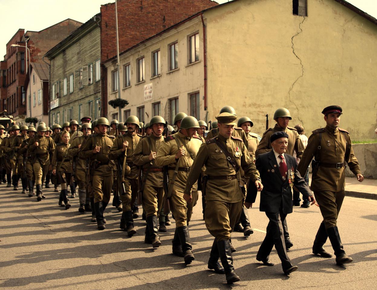 На параде таких было много. Но к лагерю и бою они никакого отношения не имели, как и к реконструкции в целом. Просто владелец или иже с ним мотоцикла, виллиса, ГАЗика.