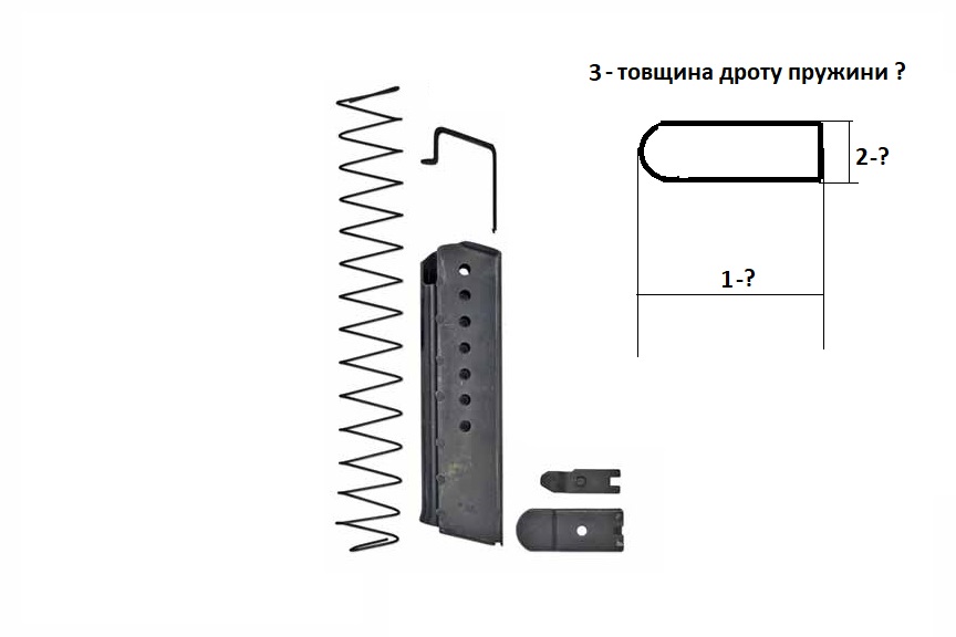 Може в кого є інформація по пружині на магазин ?. Або хоча пружина в наявності у когось є, інтересує лише три заміри, відмітив на фото.