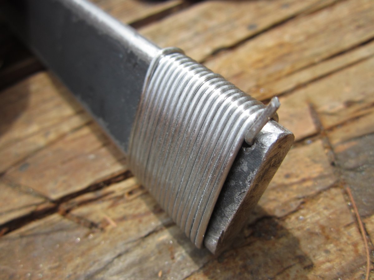 Дріт для пружини брав з круглої пружини, перед тим вирівнявши його. Намотав дріт навколо оправки в відповідну сторону. Намотував поетапно, зробив оборот та стиснув плоскогубцями і так кожен оберт.