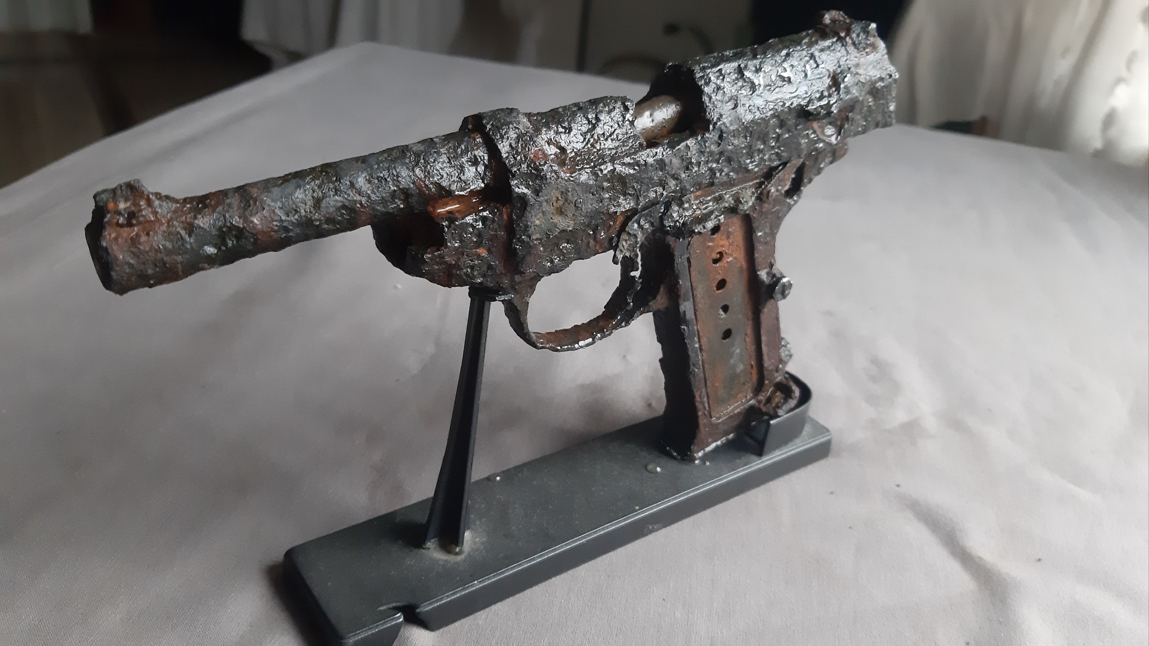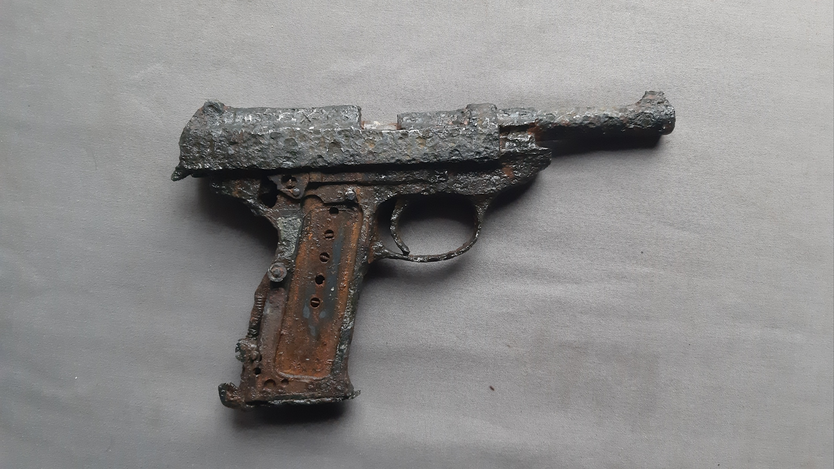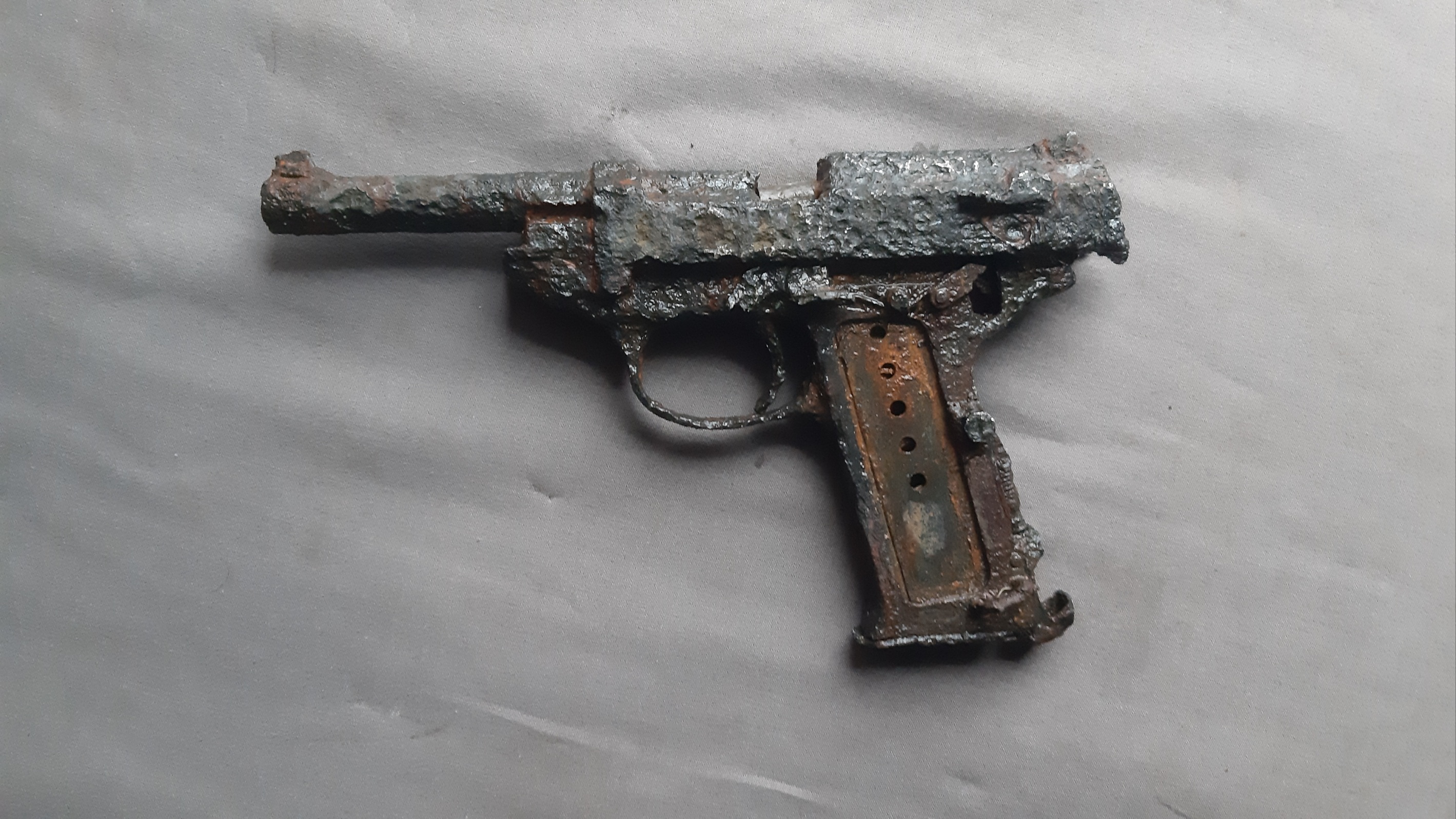 Комрады, всех приветствую! Достался такой Вальтер Р38, оцените, сколько он может стоить? Затворная рама не двигается, заклинена, на фото виден заклинившийся патрон... Ничего с ним не делалось, отмочил в воде и слегка обстучал молоточком... больше ни каких вмешательств.Не разбирал. Фото представляю. Всем, принявшим участие в оценке и обсуждении, спасибо!