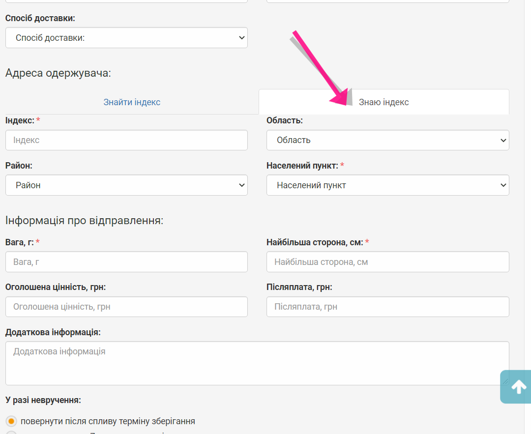 Оновлення Вариант доставки "УкрПочта"