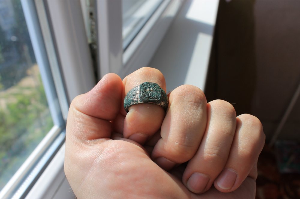 ВСЕХ С НАСТУПАЮЩИМ!!! Моя находочка. Перстень с изображением Св. Георгия, хозяин для меня на обратке оставил год, наверное знаменательного для него события.