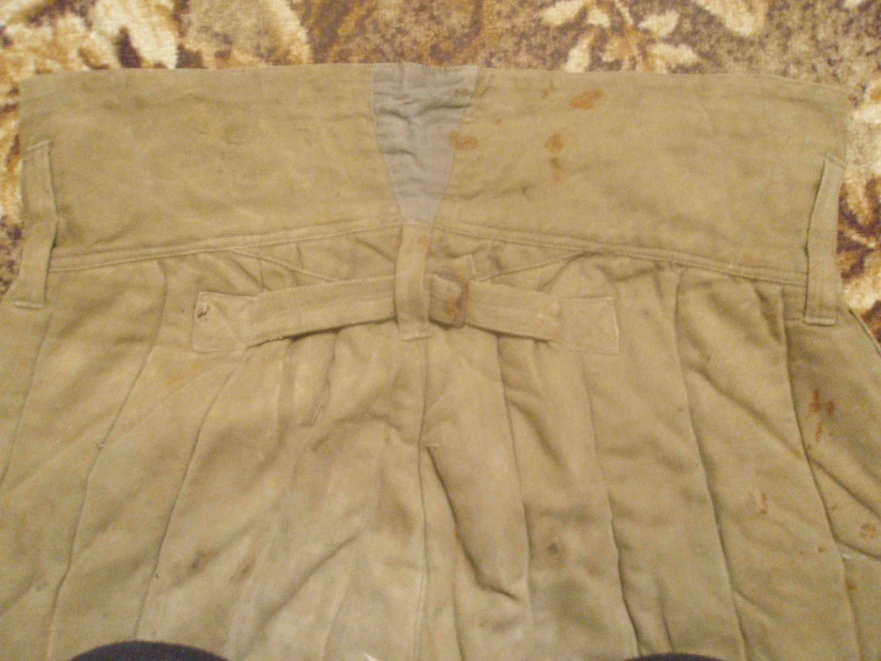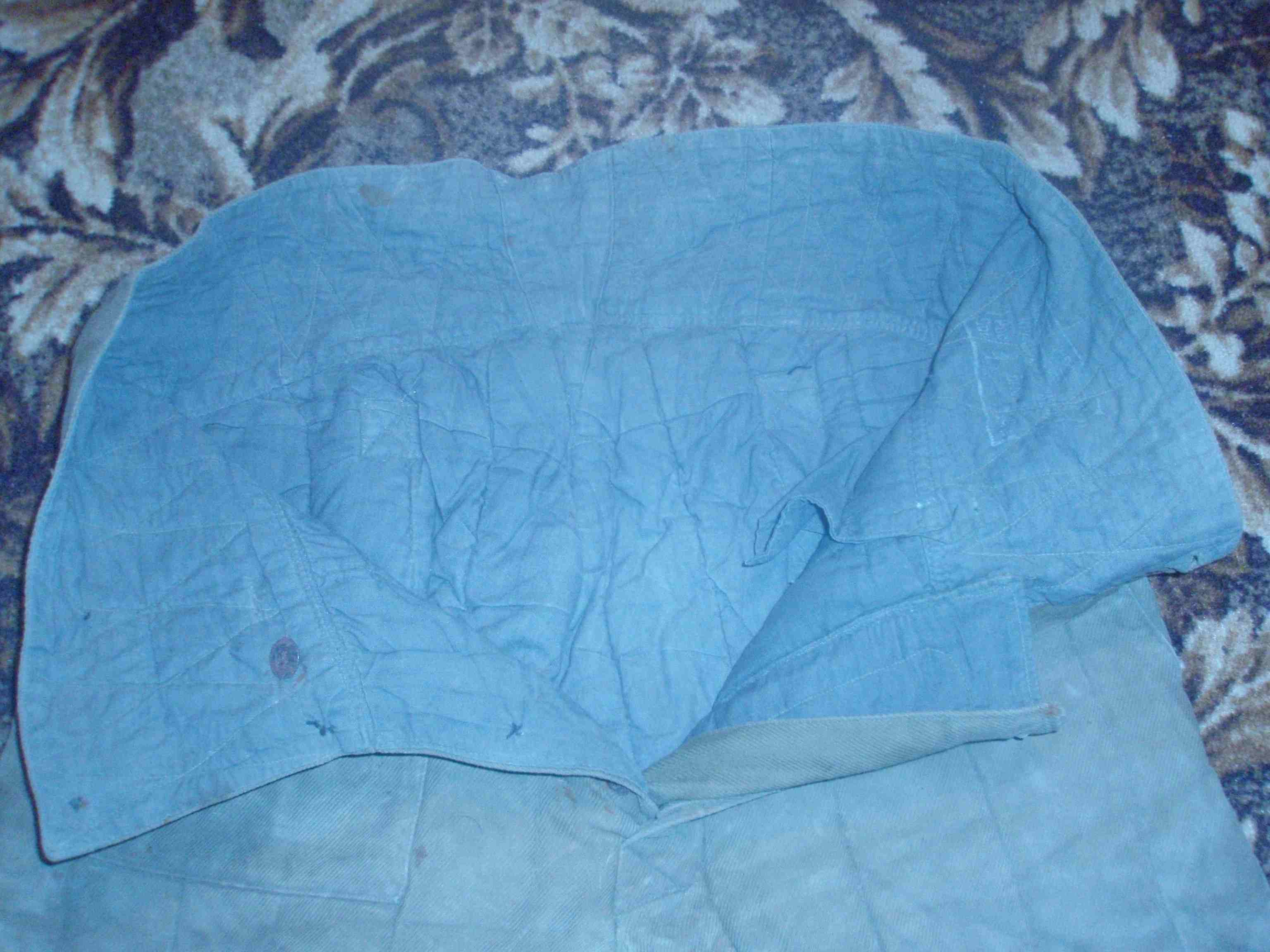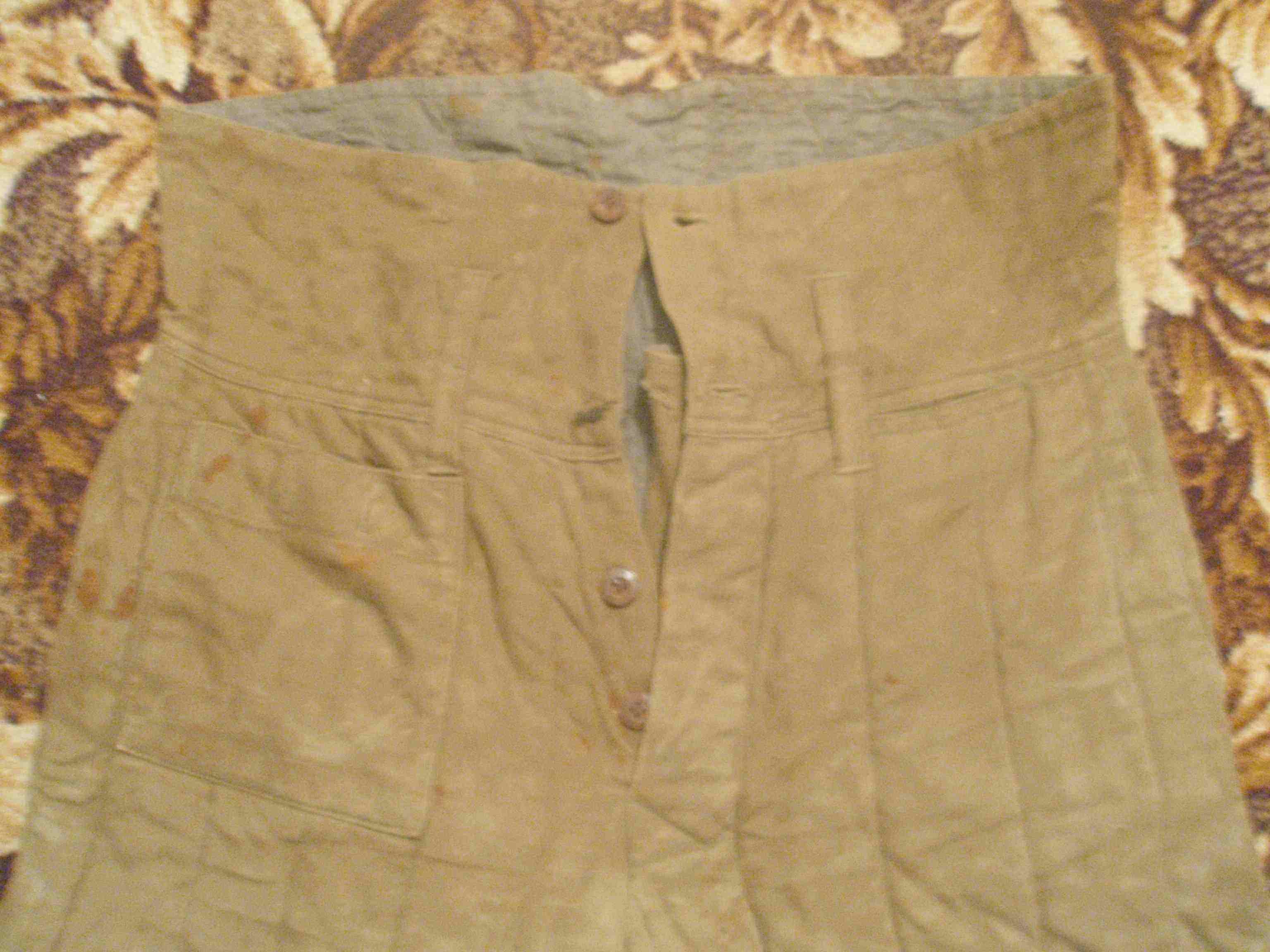 Продам ватні штани, здається 1944 року. Ціна - 65грн, пересил за покупцем. Штани цілі, на правому коліні маленька дирочка(розійшовся шов).Всі гудзики залізні, не вистачає 2(1 на кармані та 1 на ширінкі).Рост- 4-5(на штампі незрозуміло, по собі міряв)