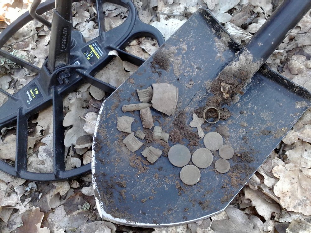 Приветствую всех камрадов ! Вчера воспользовавшись погодой решили проверить один лесок. Прогулка по лесу под лучами солнца и пение птиц без ветра вызывала почти гипнотическое состояние Навевала грусть только мысль о надвигающем циклоне со снегом и морозом который отбросит выезды возможно на пару недель Находки простенькие но сами знаете как эти первые вздохи приятны после зимней спячки