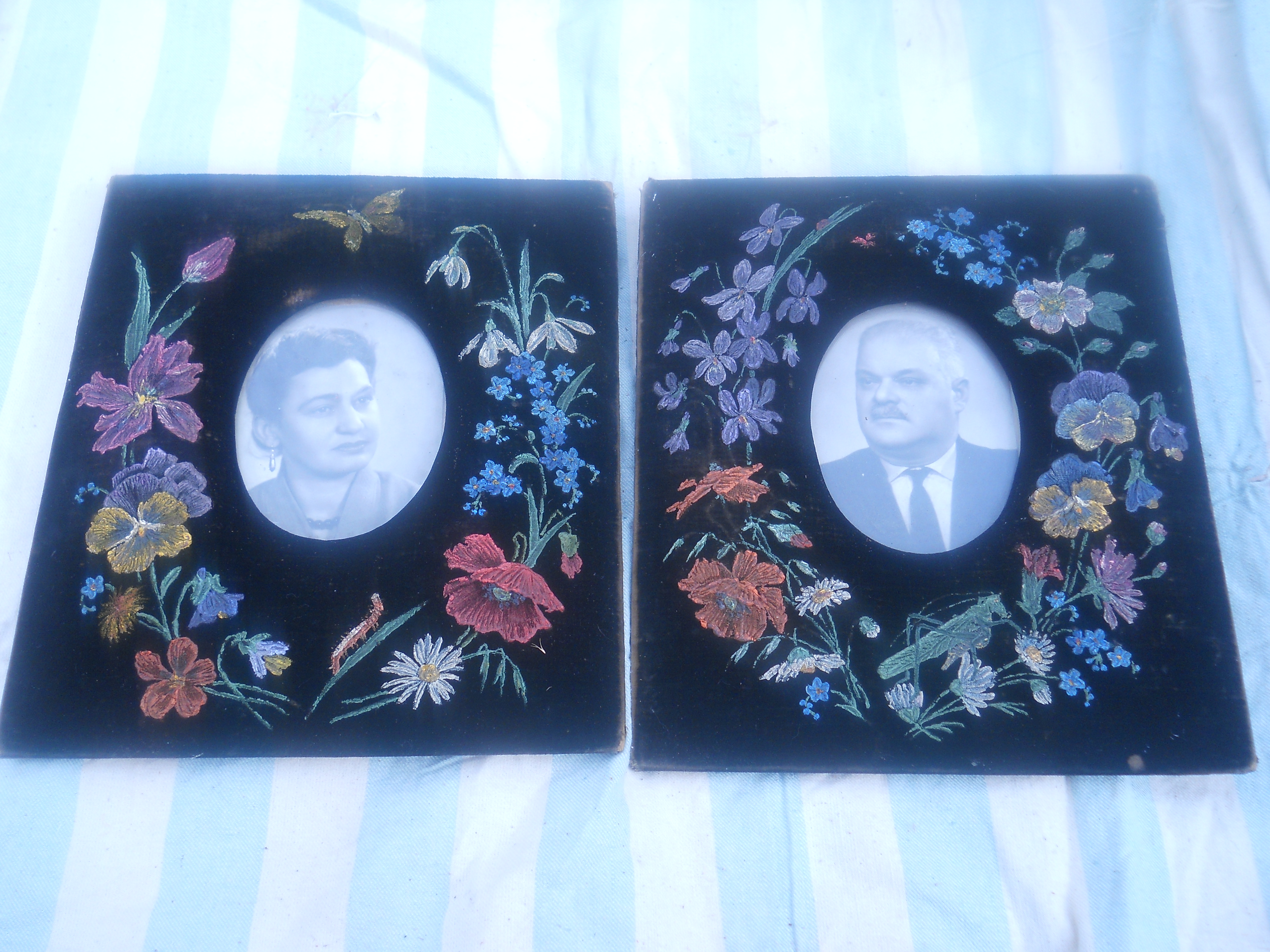 Приветствую . Попались на чердаке такие фото в рамках . Рамки интересуют , какого периода ? Рамки объемные , обклеены велюром с ручной вышивкой .