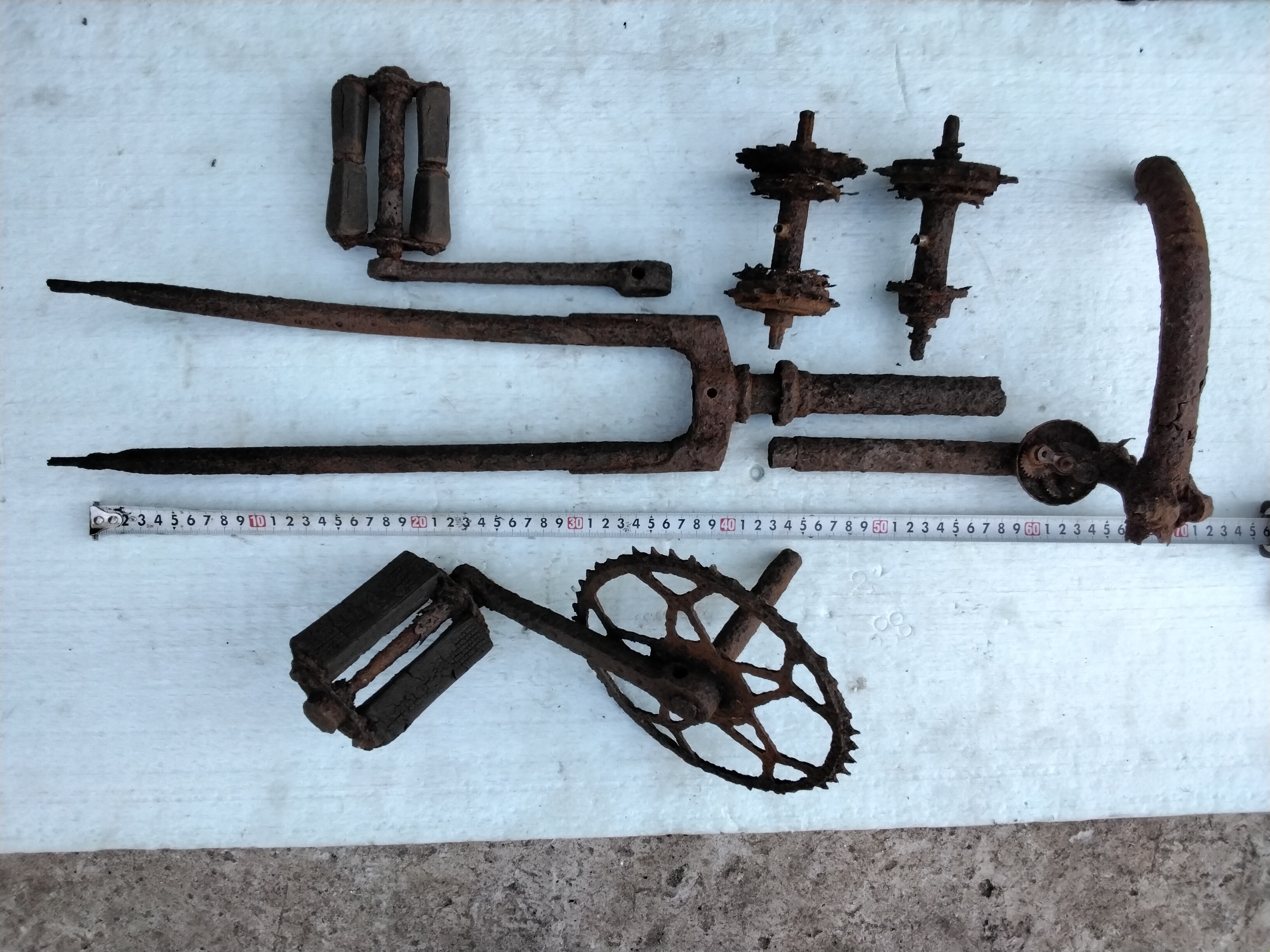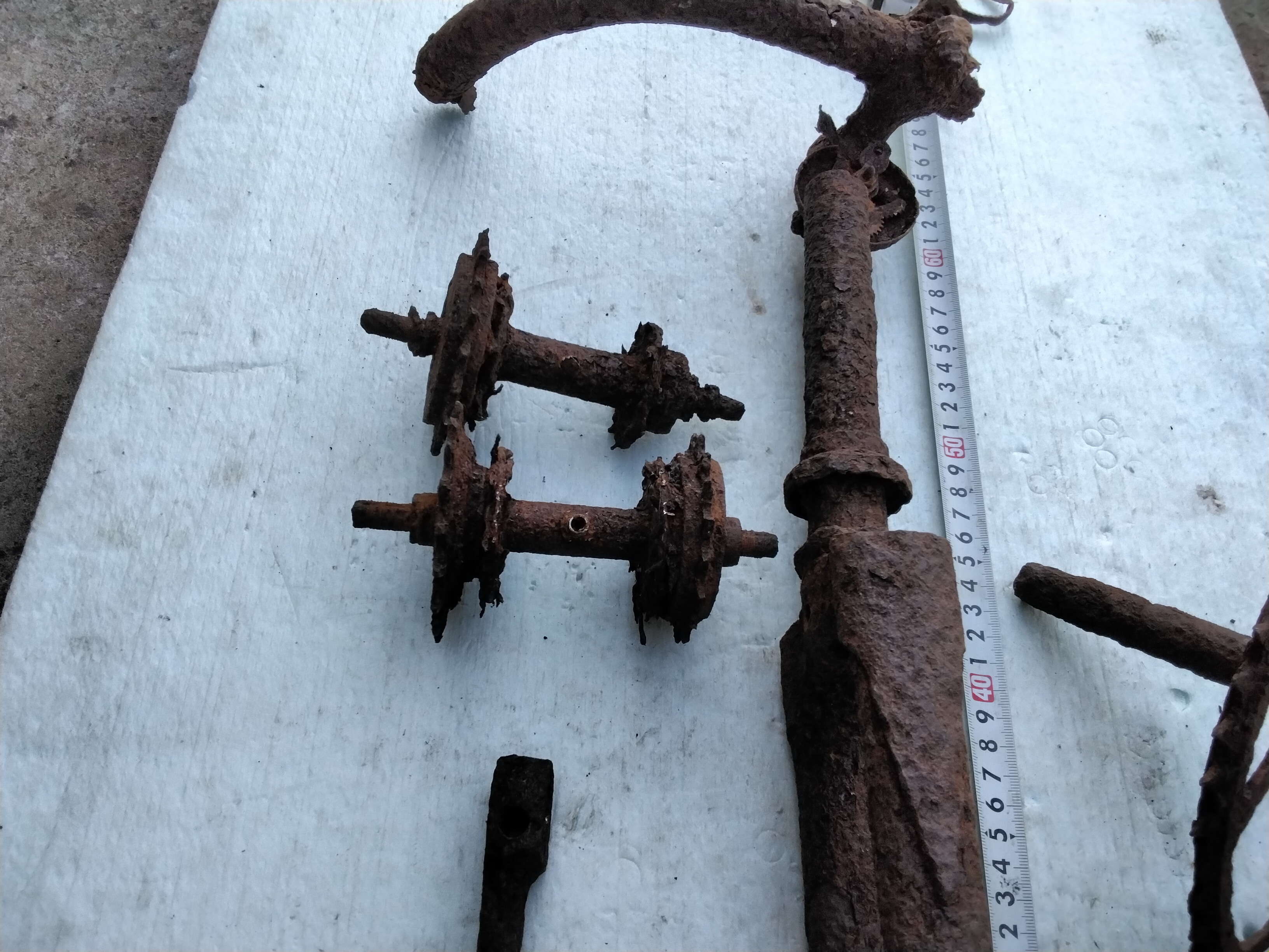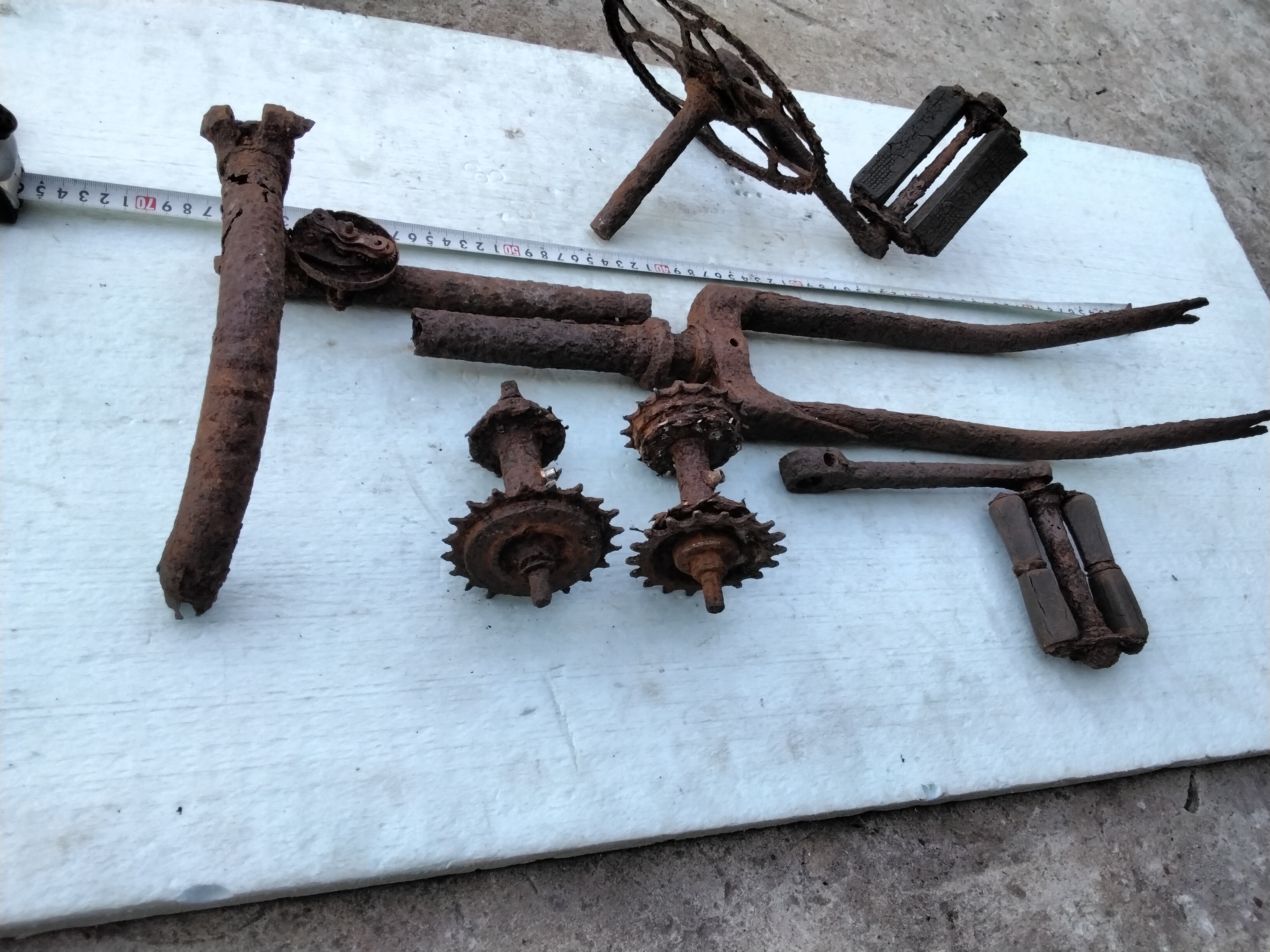 Це залишки польського велосипеду 1930-х рр. Ні німецьким ні рядянським він бути не міг. Про це свідчать і вилка, і залишки спортивного руля типу "баран", і шатуни, і педаль, і втулки "англійського" типу. Це був цивільний напівспортивний велосипед. Військових велосипедів залишилось десь на 2 порядка меньше ніж цівильних тих часів. Тому не треба в усьому бачити "на війну", а тим паче Вермахт. З 1920 по 1939 рр. місцевість, де він знайдений це була Польща. Тому більшість довоєнних роверів на західній Україні ніяк ні німецького, та тим паче ні радянського виробництва.