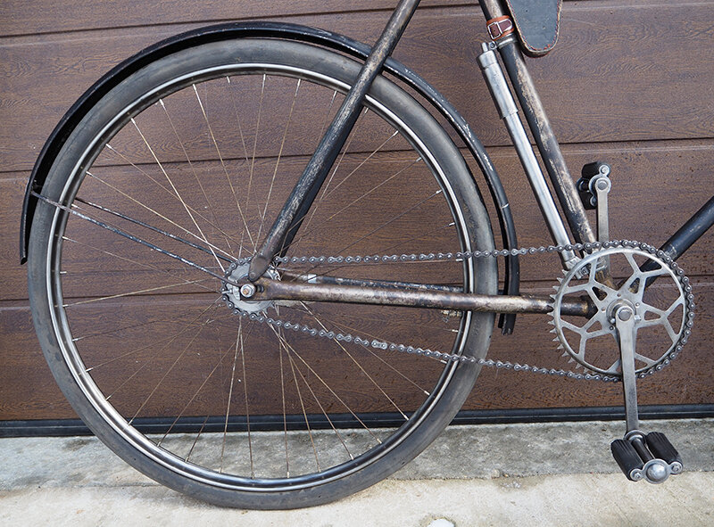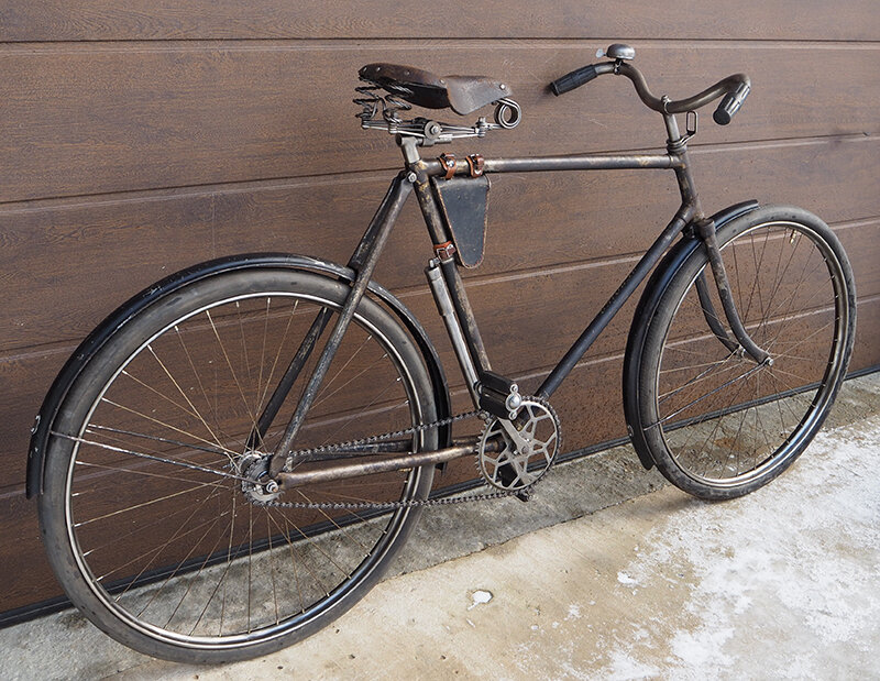 Доброго здоровя. Якщо це ще актуально, то рекомендую пошукати серед велосипедів країн Балтії - Еренпрейс, Латвелло, Ліва, Озолніекс. Руль без виносу характерний саме для велосипедів Латвії(провідна країна по виробництву велосипедів до ІІ світової війни у Європі). В мене є Латвелло, тож є певна схожість. Кріплення для насоса та вуса заднього крила точно з європейця, не совок. На сайті "кроковод" (посилання в темі вже було) є статті по балтійських велосипедах. На мою думку - це Еренпрейс. Велика зірка та педаль точно не від нього(совок), має бути на 60 зубів (така в 20-30рр мода була)