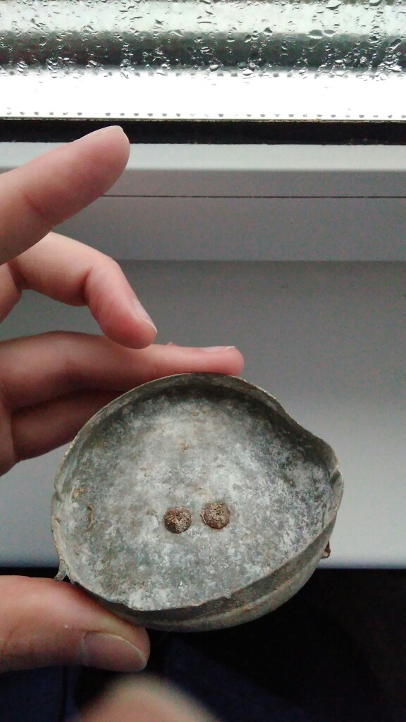 Подскажите по находке. Металл - цинк? Место находки - немецкие позиции по 43г ну и как правило поверх не много современного мусора. На вид предмет старый, без видимых клейм.