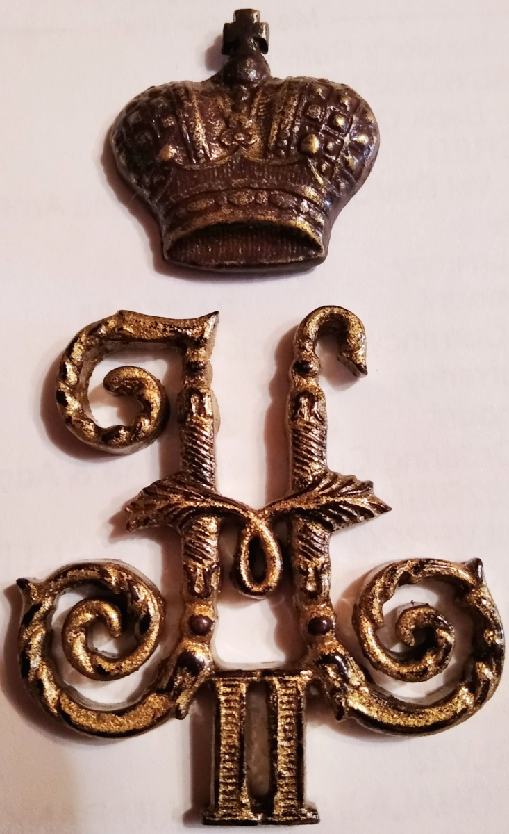 Добрый день,подскажите с чего этот вензель с короной,высота вензеля 5 см,крепления нет.