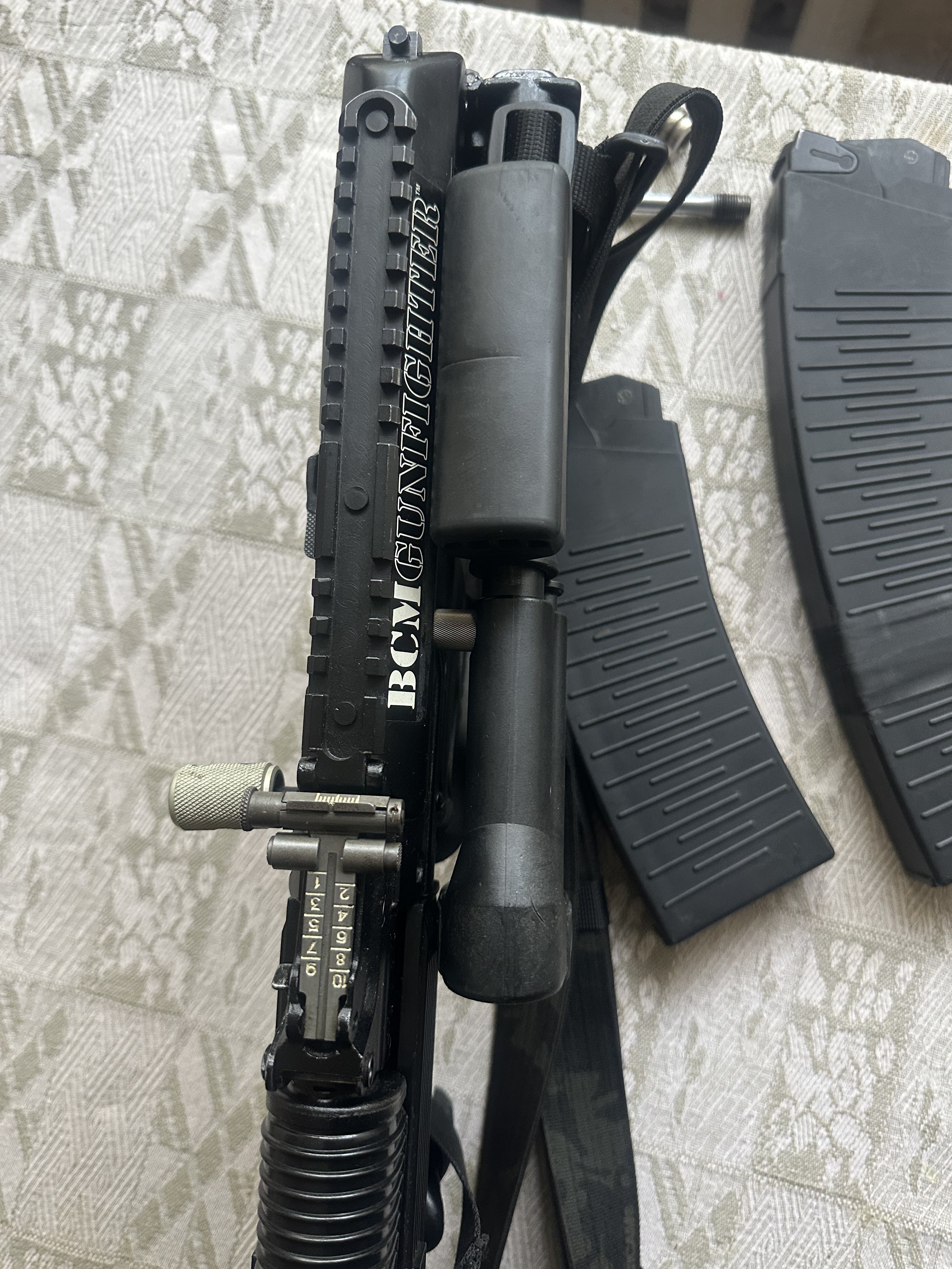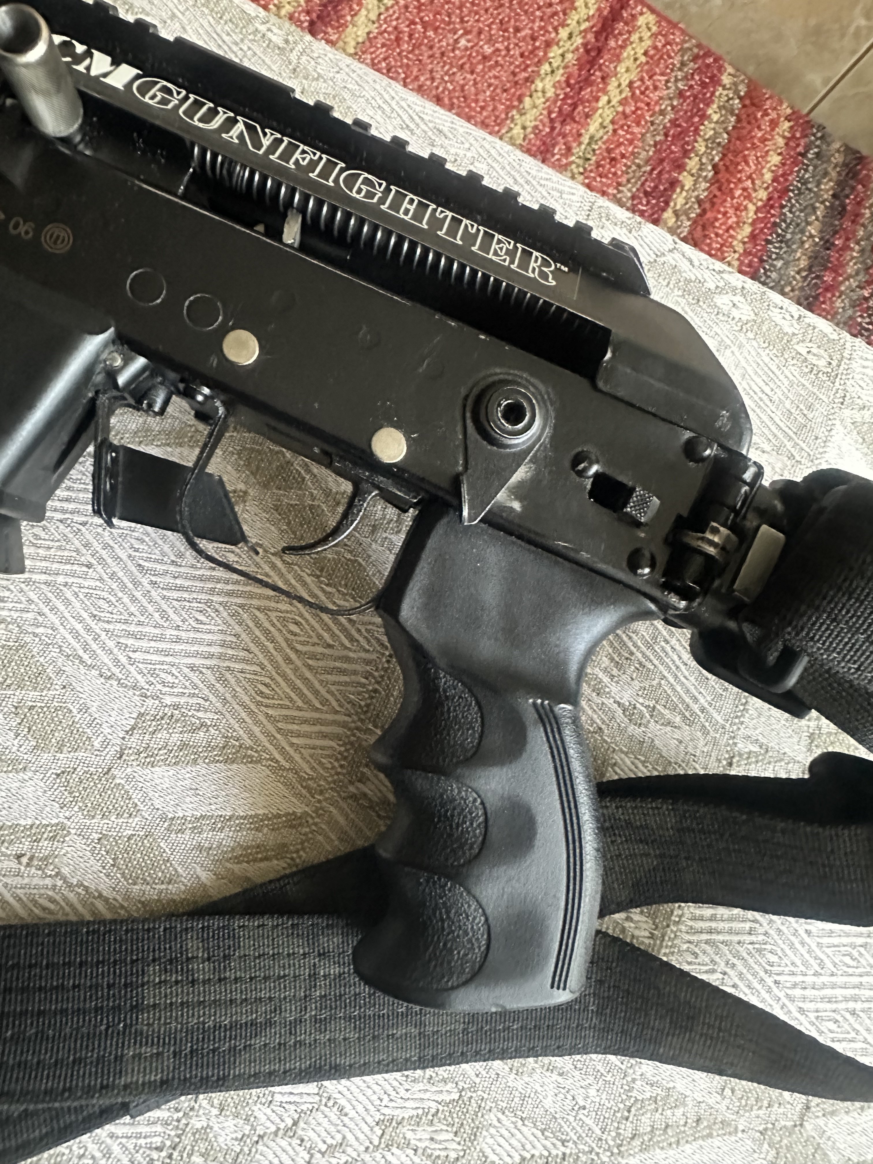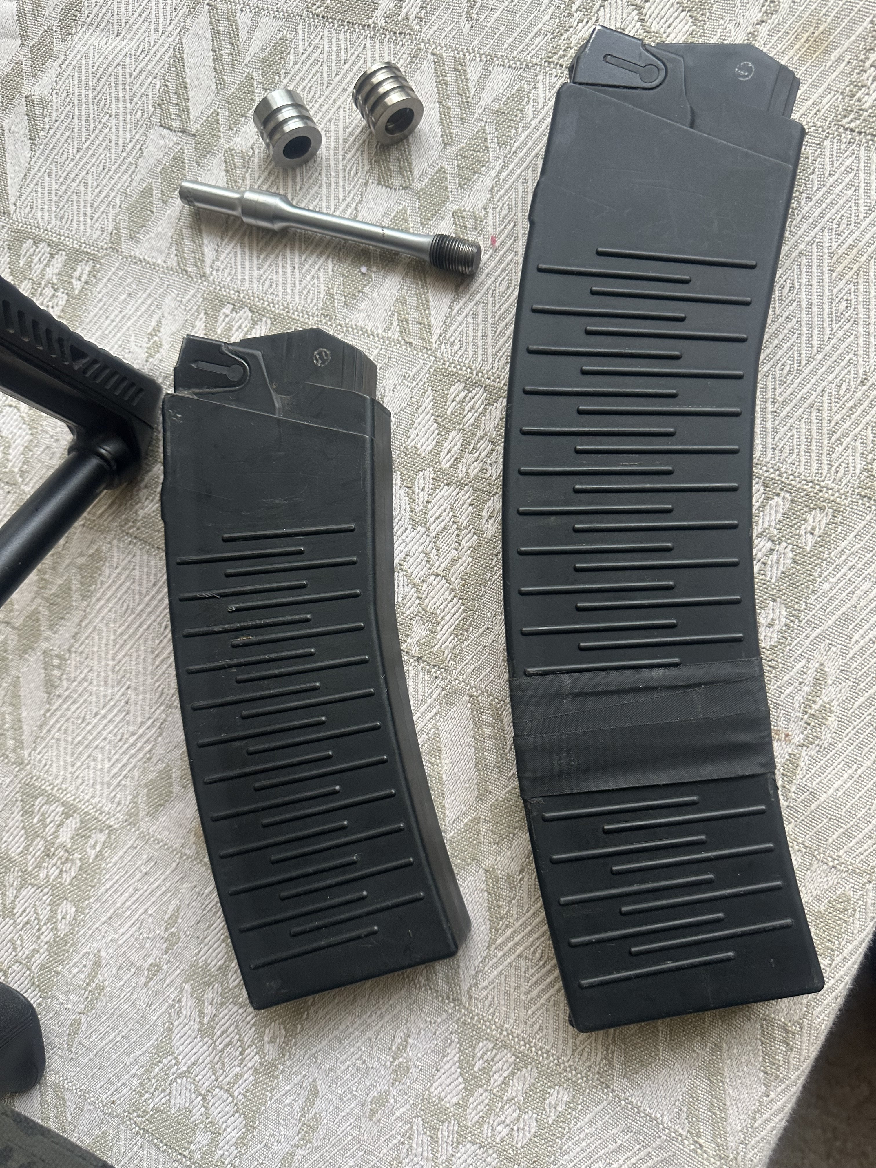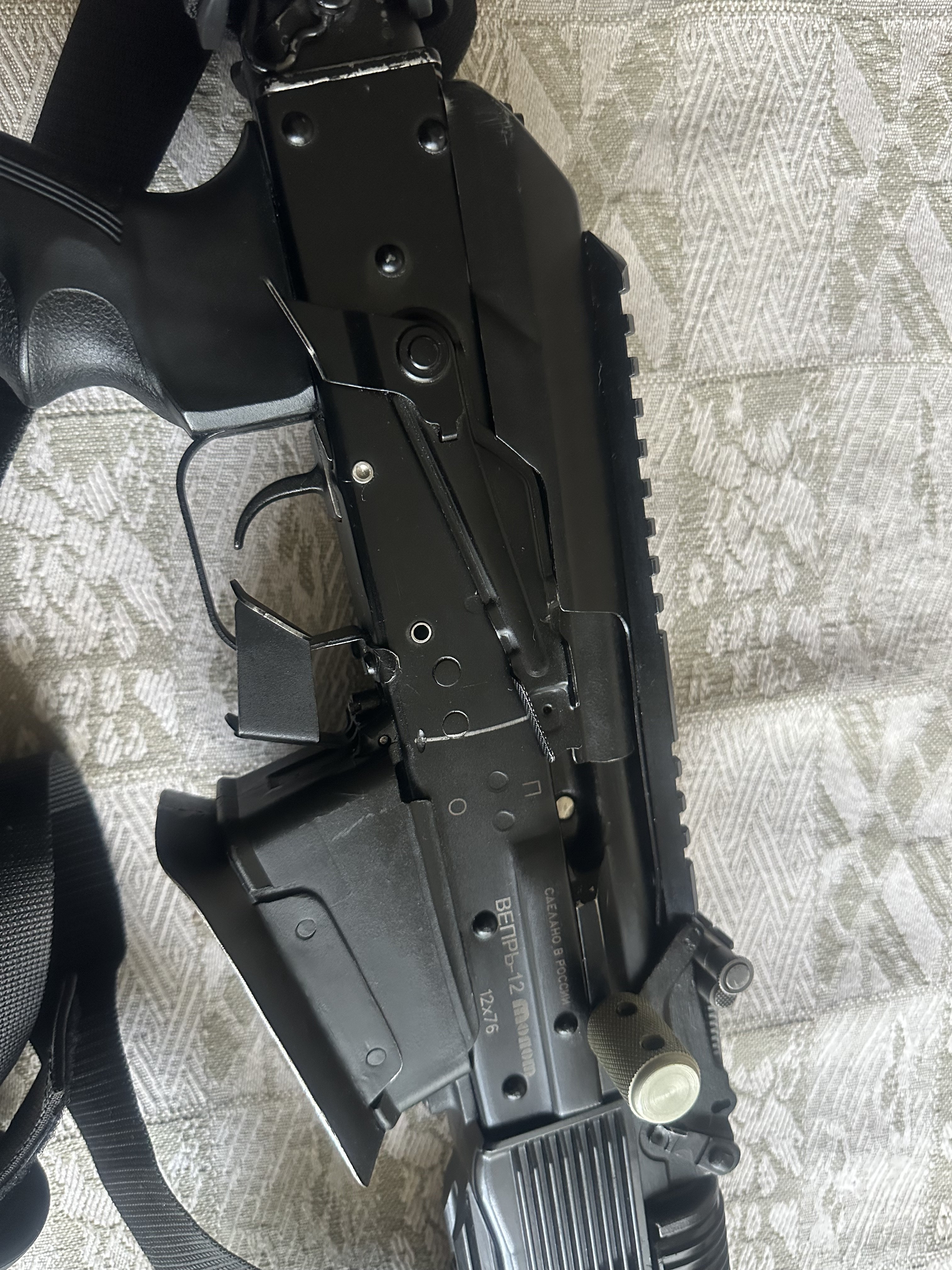 Решил продать одного из своих любимчиков. Вепрь отбирался из первых выпусков (не то г... что начали выпускать потом) 1. Была установлена личины без проточек (с проточками лопаются при большом настреле) 2. Эргономичная рукоять 3. Эргономичный преклад с подщечником 4. Рукоять управления огнем 5. Демонтирован безтолковый ДТК, нарезана резьба и установлен фирменный, высокопроизводительный ДТК 6. Кнопка быстрого сброса магазина 7. Рычаг снятия-постановки на предохранитель 8. Буфер отдачи 9. Затворная рама с рукоятью введения затвора левой рукой 10. Крышка ствольной коробки с вырезом под затворную раму с левым речагом. 11. Титановый колпачок затвора 12. Магазин на 12 мест 13. Титановый шток затворной рамы 14. Облегчённая затворная рама 15. Титановые оси УСМ 16. Титановый поршень (облегчённый и укороченый для сверхмалой навески) 17. Титановая левая ручка взвода 18. Титановый винт и гайка рукоятки 19. Доработан УСМ Стоимость такого тюнинга, обошлась на много дороже самого карабина. Цена 1900$ Продажа строго по зеленке