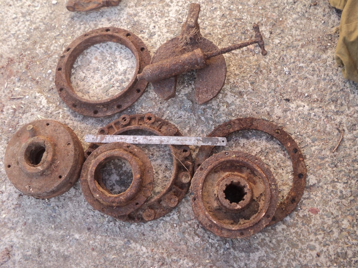 Здравствуйте уважаемые форумчане. Искали старину, а попались детали с техники. Тема не моя, прошу рассказать, есть ли что интересное или металолом. В гараже еще лежит коленвал, по требованию фотографию предоставлю. Буду признателен за интерес к теме.