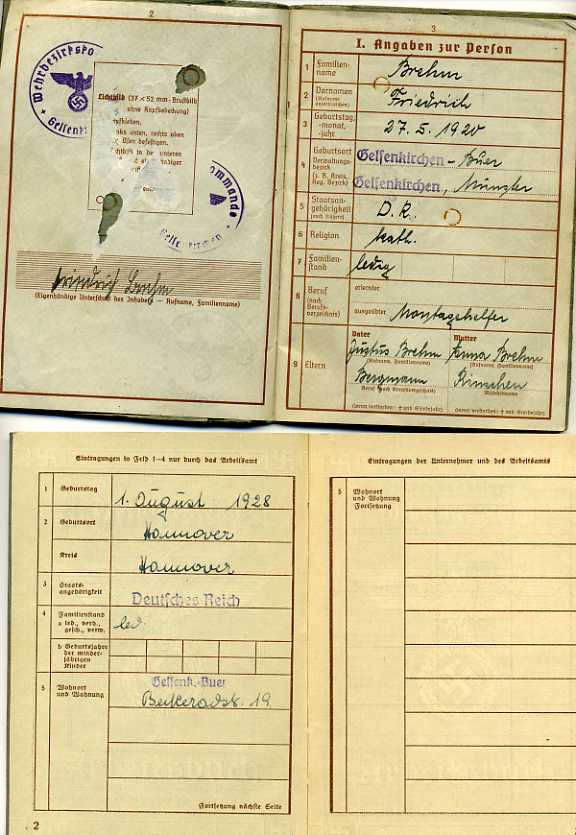 Предложу верпас и арбайтсбух. На разных людей. Верпас - без фото. Оригинальность гарантирую. Желательно в одни руки - 55 у.е. за оба + пересыл. По отдельности : 20 у.е. - трудовая, и 40 у.е. - военник. + пересыл.