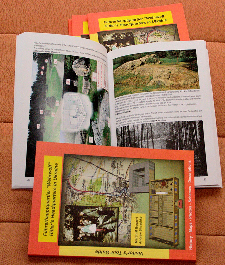 Путеводитель. Личный гид-экскурсовод по бывшей ставке Гитлера «Wehrwolf» Вервольф (Стрижавка Винницкой области, Украина). История, фото, схемы, карты, 3d рисунки. 128 страниц Visitor’s Tour Guide. Führerhauptquartier Wehrwolf” Hitler's headquarters «Wehrwolf» in Ukraine Сейчас наш путеводитель находится на последней стадии допечатной подготовки... Скоро книга будет напечатана и поступит в продажу на английском языке. Принимаются заявки на книгу. Цена будет известна в ближайшее время.