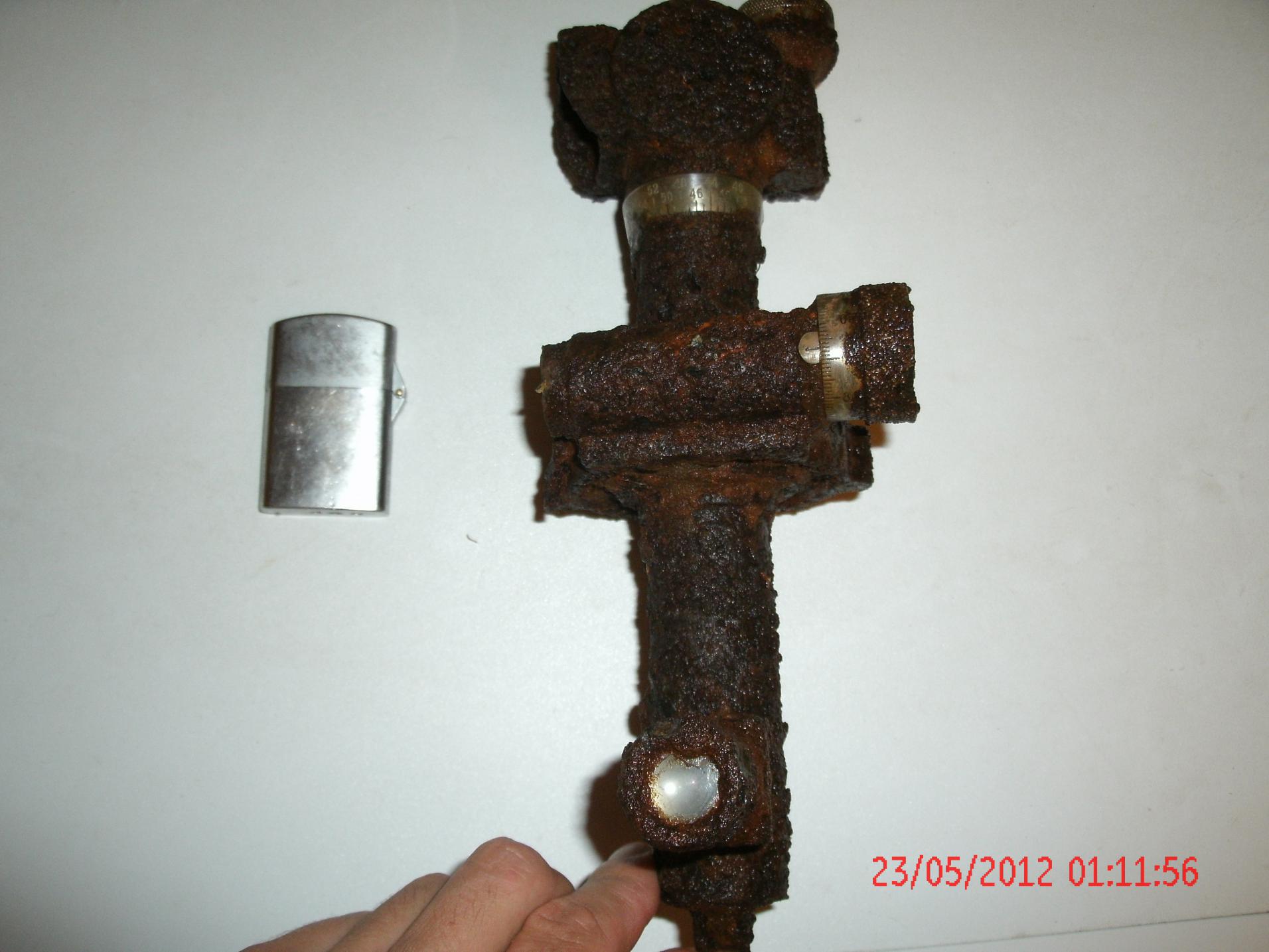 Сегодня случайно набрел на позиции советских артиллеристов.Видно сильно им досталось от гансов,тк попадались малоузнаваемые фрагменты какого-то вооружения (клепанные балки,стремянки болты ,куски тонких бронелистов и тд) и снаряжения (фрагменты русских касок"трехклепок", ранцев РККА) все позиции были щедро усыпаны осколками снарядов крупного калибра...Из интересных находок попалась какая-то орудийная панорама-"прощай мама!" и довоенная дверца от печки.Комрады подскажите от какого орудия данный оптический прибор?