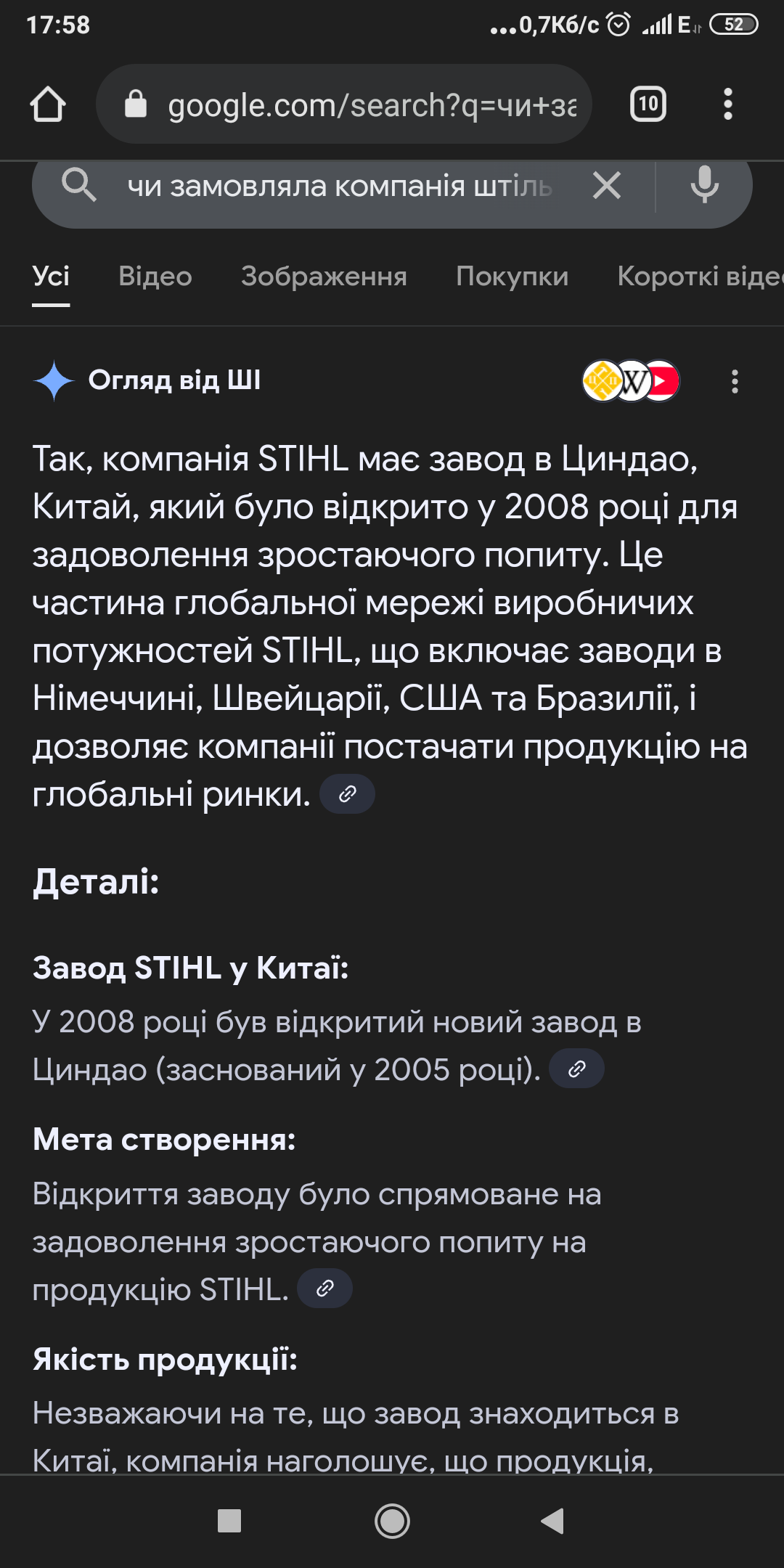 Я Вам вже триста разів писав, що в мене Sadko , шина 50см, 56куб двигун. Вона наче знята з виробництва, якщо вірити інтернету, взагалі не знаю чи ця фірма ще існує. Погугліть назву, типу Словенська фірма, не звертайте на це уваги, звичайний якісний китай, під замовлення словенії. Так само як і штіль замовляв, і не лише він, ще Віталс, Дніпро- М і далі по списку. Вам пилка 56 куб скоріш за все і нах, не треба, тому сказав що візьміть з меншою шиною, не 50см, а 35-40. Довгі ланцюги задовбетесь точити. І що тут неясного? Нагугліть модель з приблизно такою кришкою і фільтром що я на фото вище викладав, він рідний, не мінявся тристапісят раз як войлочний за ці десять років, просто обережно треба брати щоб не продавити сіточку. 2хвилини на обтрушування та хоч об штани фільтра в посадці, установку назад, і закриття кришки. В штілі задовбетесь вибирати з войлока стружку, як і знімати та класти назад кришку, як і в іншій другій моделі з такою конструкцією. Швидко не вийде Якщо Вам принципово знати саме мою модель,то ось Вам фото гарантійки, там видно і дату покупки, навіть на місяць раніше як я казав, бо думав що в квітні. Ви як так будете вибирати, то нічого і не купите. Якби фірма і китай по ціні були однакові, тоді можна було б паритись, а якщо китай вдвічі дешевший, то пофіг на його ресурс, по грошам Ви нічого не втрачаєте. Половину часу роботи штіля цього він відходить точно, можливо і однаково приблизно, це від багатьох факторів залежатиме: як пиляєте, скільки, і чим заправляєте. Хтось автівку за рік вбиває, а хтось десятиліття не заглядатиме в ремонт, причому однакової фірми і моделі. Деталі розхідники на китаєць дешевші, масло в бенз рекомендовано лляти більше, і по факту це весь косяк китайця. Ви думаєте штіль деталі в китаї не замовляв? Розчарую карбюратор "zama" китайський під замовлення штіля. Двигун не знаю , як і все інше.