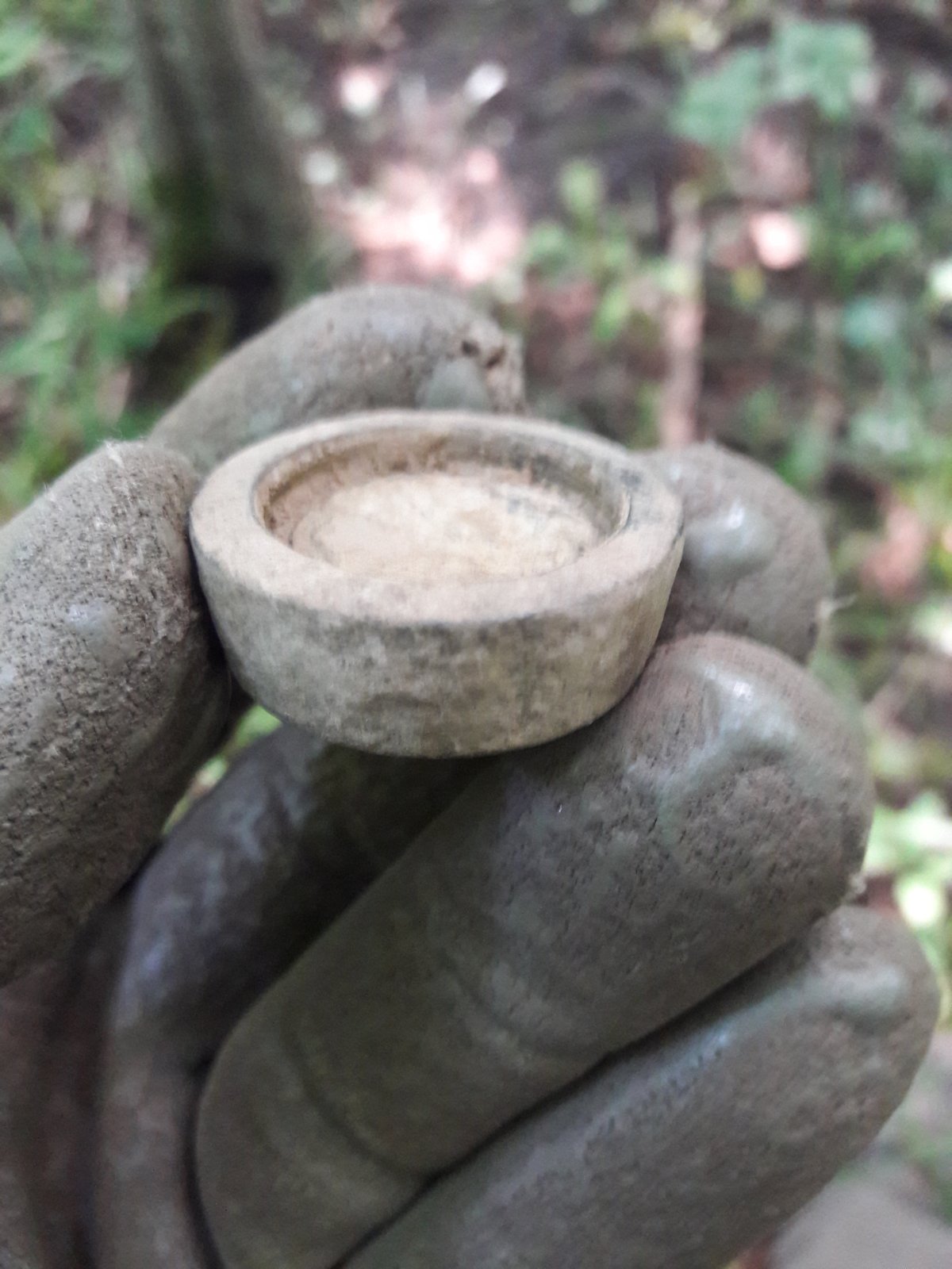 На крайньому виході попалась на смітнику така баклажка. Спочатку не придав їй значення, тому що на звикле військове спорядження вона не схожа. Але коли дома помив, задумався. Схожий колір емалі часто зустрічається на австрійському посуді. Можливо все-таки вона має відношення до війни ??
