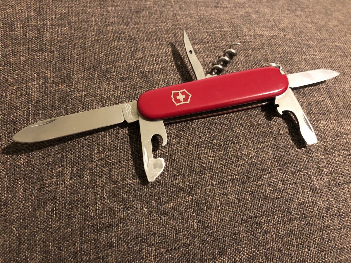 Victorinox Spartan Б/У ТТХ: Загальна довжина: 91мм. Вага: 60г. Набір інструментів: - ніж великий - ніж малий - відкривачка для пляшок - велика плоска викрутка - мала плоска викрутка - паз для зняття ізоляції - консервний ніж - штопор - пинцет - зубочистка - шило - кільце Ціна: Продано Територіально: Київ Відправка: НоваПошта Оплата: Монобанк, ПриватБанк, (наложений платіж за бажанням)