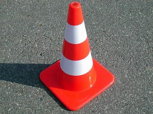 щойно йду: на кришці пластикового люка жироуловлювача (каналізаційний люк) роздавлений дорожний конус:eek: