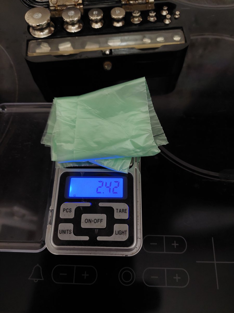 я поки рахую по "дореформенному" періоду - коли пакети були безкоштовні...потім перейдемо на те коли за пакети почали брати гроші... по моїм вагам такий пакет як для цукерок (без ручок) вийшов 0,95г. а трохи більший зелений з ручками (він і плотніший) 2.4г.