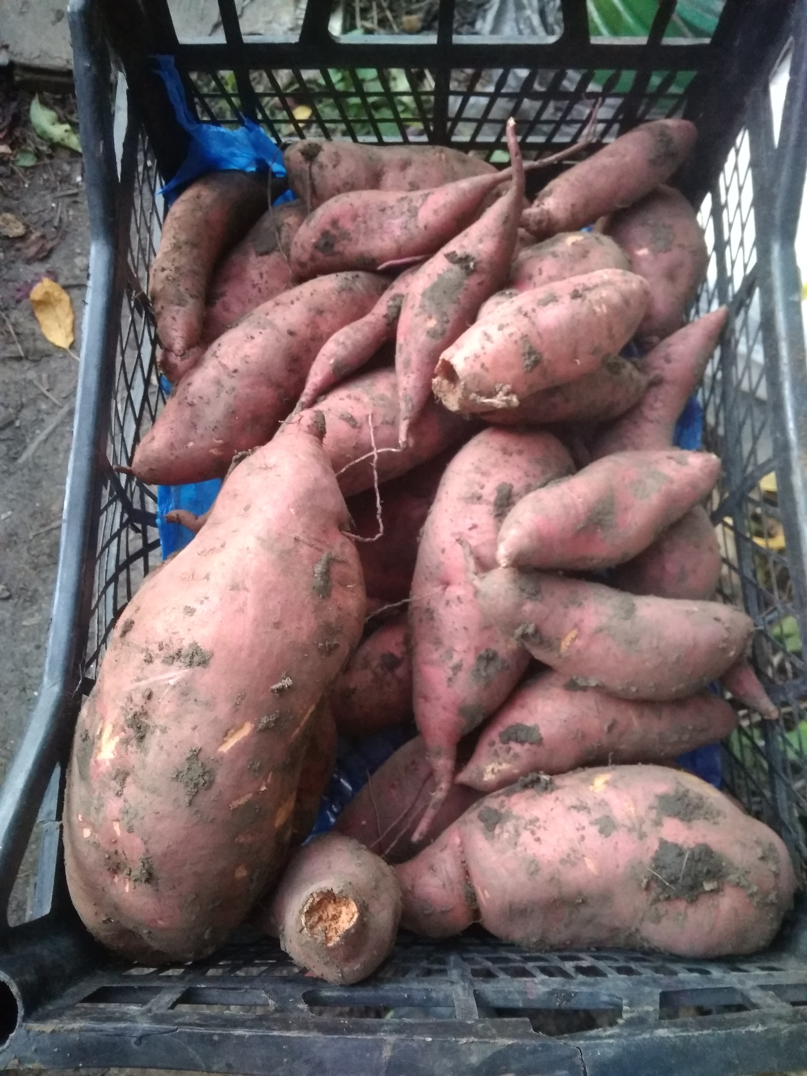 Єдин клубень наполовину занурюється у пісок/землю, суміш або бутерброд (у лютому) , у тепло, поливається. Клубень дає паростки, які при довжині 10+ см треба відломити від клубня, та поставити у стакан з водою, паростки дають корінці. При довжині корінців 5..7+см прямо зі стакана висаджуємо у лунки на городі. Лунку як під інші культури треба удобрити - перегній, компост та інше. Потім тільки треба поливати, та дивитись, щоб бадилля не вкорінювалось, піднімати періодично його. Смак є дуже різний, помаранчевий (на зрізі) - солодкий, білий, фіолетовий, дуже схожий на картоплю. Якщо треба, я вишлю пару клубнів. Батат ще задорого продають в Ашані, нема сенсу його брати на пророст, чимось оброблений, глазки попечені, не сходить )) Пс, сітка посадки 40 у рядку, 70+ між рядами. Заплітає землю вщент. Бадилля не треба палити, там нема хвороб, на відміну від томатів/картоплі, його треба заорювати, за зиму перегниває вщент. Пс2. У вас треба садити під плівку. Різниця дати викопки у 2 тижні суттево впливає на розмір клубнів. Копається по/перед першим мінусом, листя негайно жухне, треба терміново брати лопату та копати. Пс3. Як би ми починали пророст з січня та видадку під плівкв на 3 тижні раніше, результат був би на ящик більше )) Нових клубнів не додалось, але розмір збільшився б.