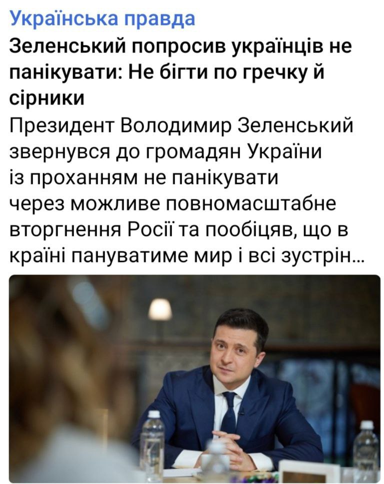 Сьогодні велика історична дата: рівно рік тому 19.01.22 Zeлений прутень нас закликав готуватися до шашликів і не запасатися сірниками та гречкою!