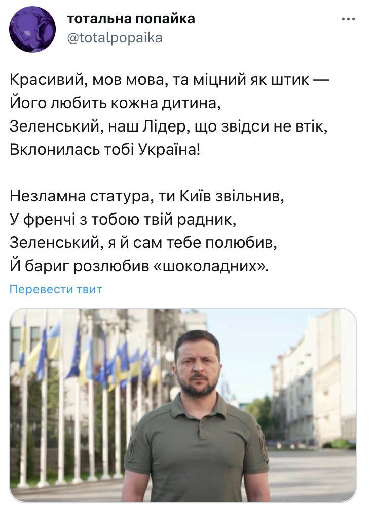 Я не голосував за Зеленського, але після вашого вірша я все осознав і увірував. Слава Зеленському!
