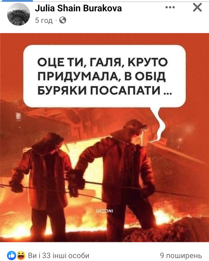 ...про те-Ж : ...колись давно, ще дО ато/війни їхали ми на коп на північні плацдарми... ...а кум залишив шуфлю ув гаражі... та то ж не біда - заскОчили ув Епіцентер на Братіславській, ...купив таку собі єднУ (не фіскарс звІсно) (...наче ще й ніогенька, ....булА, ...красІва, ....з самоклеєною етікєткою...) .... (театрально пАуза) ...вона зламалася на третьому копку, мейже не зідралась самоклЄйка... а на півночі в осноовному - пісок... (на КіУР-і вона б здОхла зразу...)